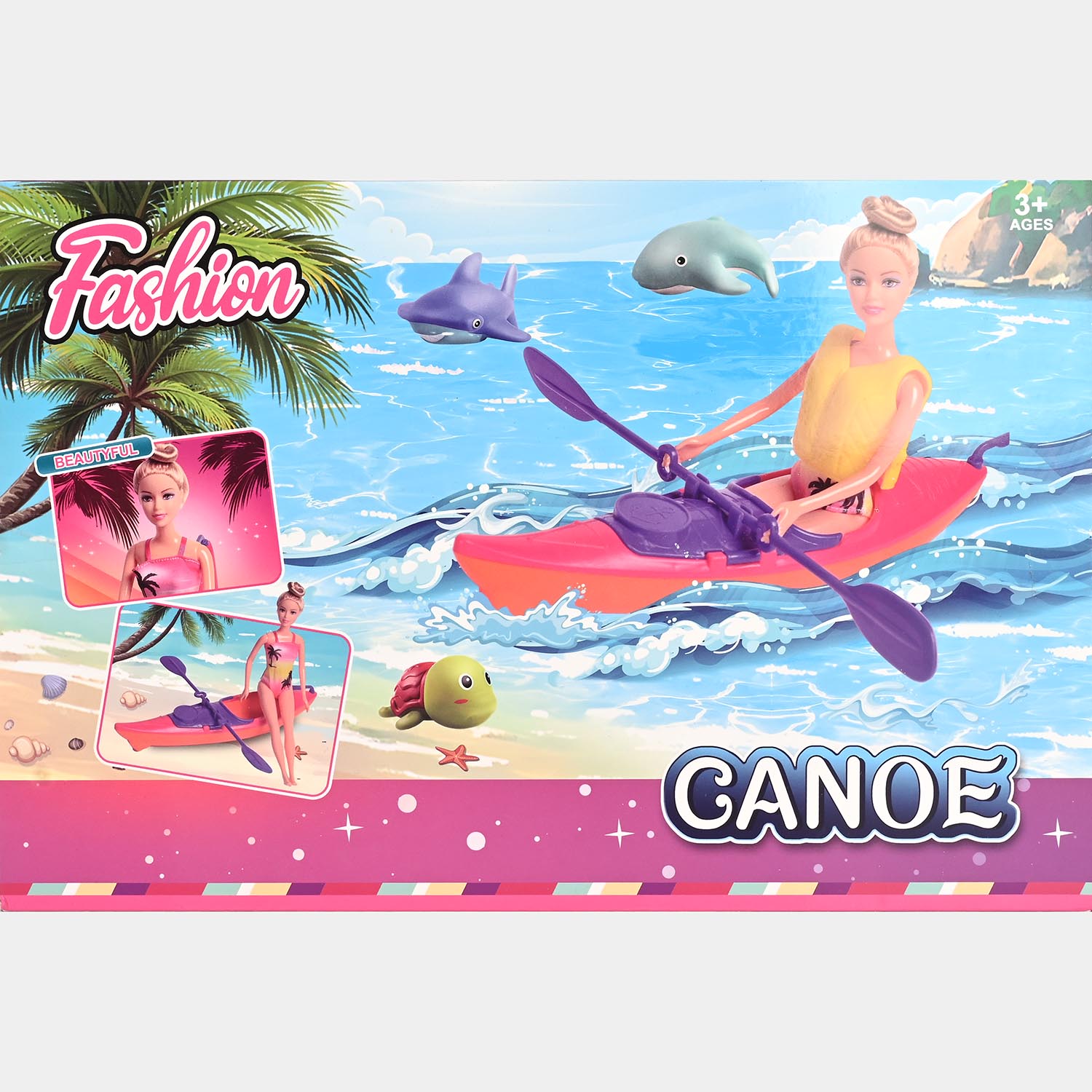 • Coordinated Design: Features "Fashion Matching" colors, with the pink, purple, and yellow palette consistent across the doll's clothes and the boat accessories.