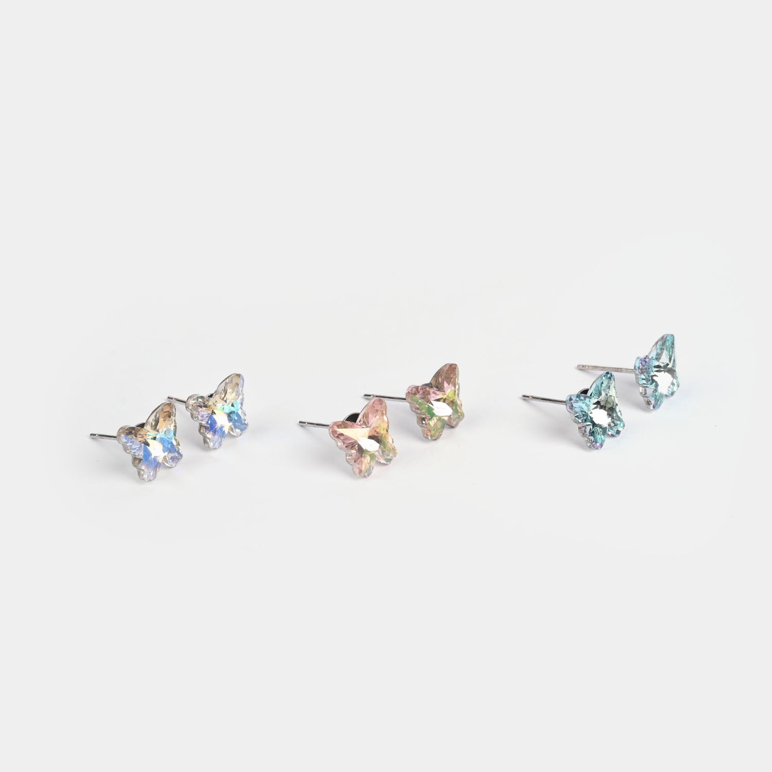 Design Butterfly earrings, 3 pairs in white, peach, and blue