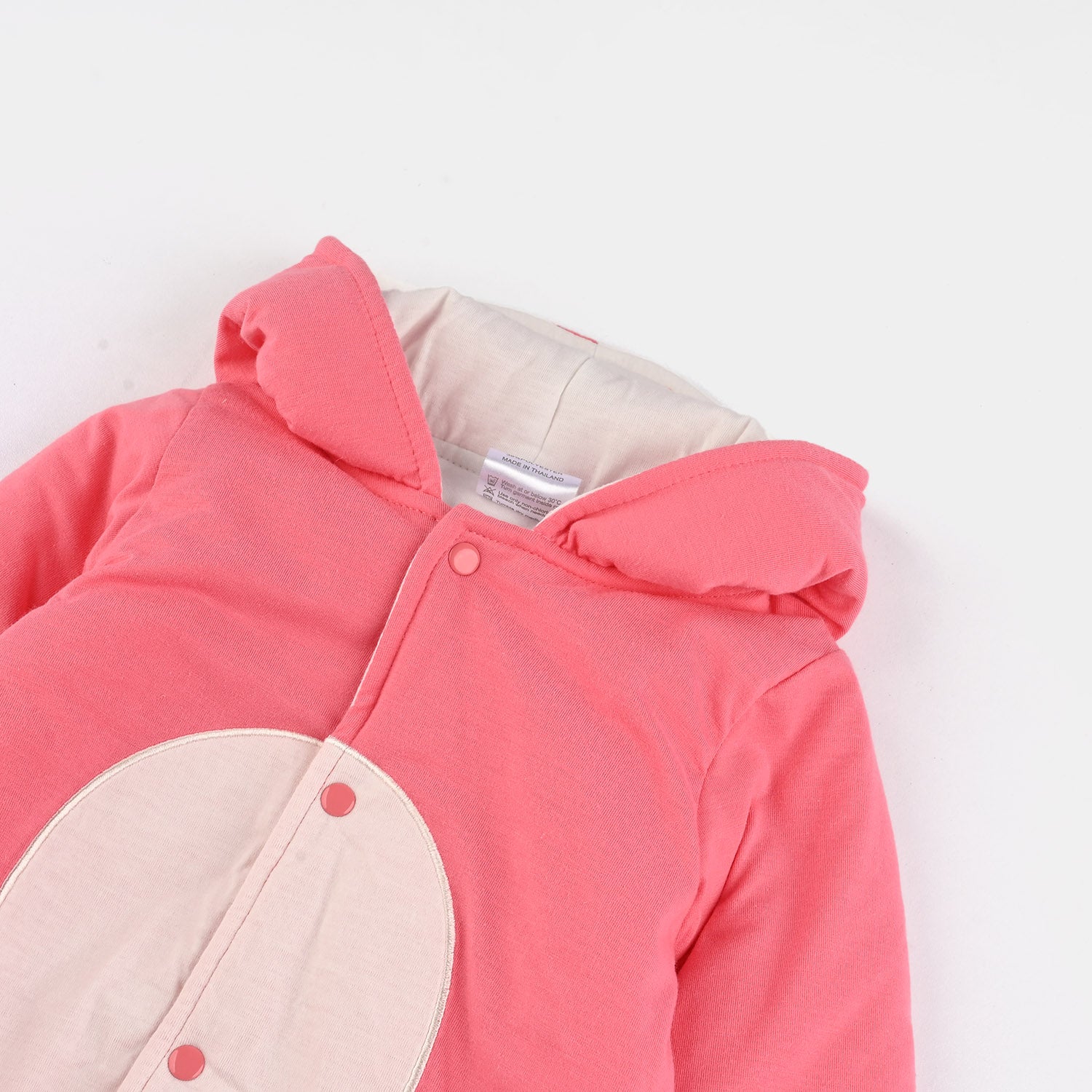 Crafted from soft, breathable cotton interlock, this infant girl's romper ensures all-day comfort. Featuring a gentle round neckline, cozy hood, and built-in socks, it's as adorable as it is kind to sensitive skin. Thoughtfully designed for easy wear and maximum comfort, it's an ideal choice for everyday use.