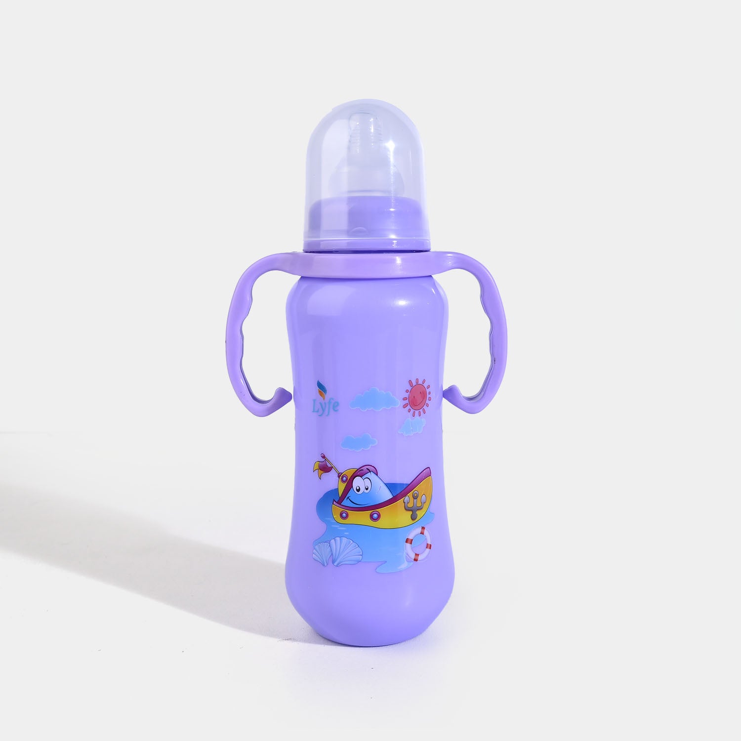 Baby feeder bottle with side handles for easy grip, helping your baby learn self-feeding safely. Made from lightweight, food-grade, BPA-free material, perfect for everyday use, 280 ml capacity.