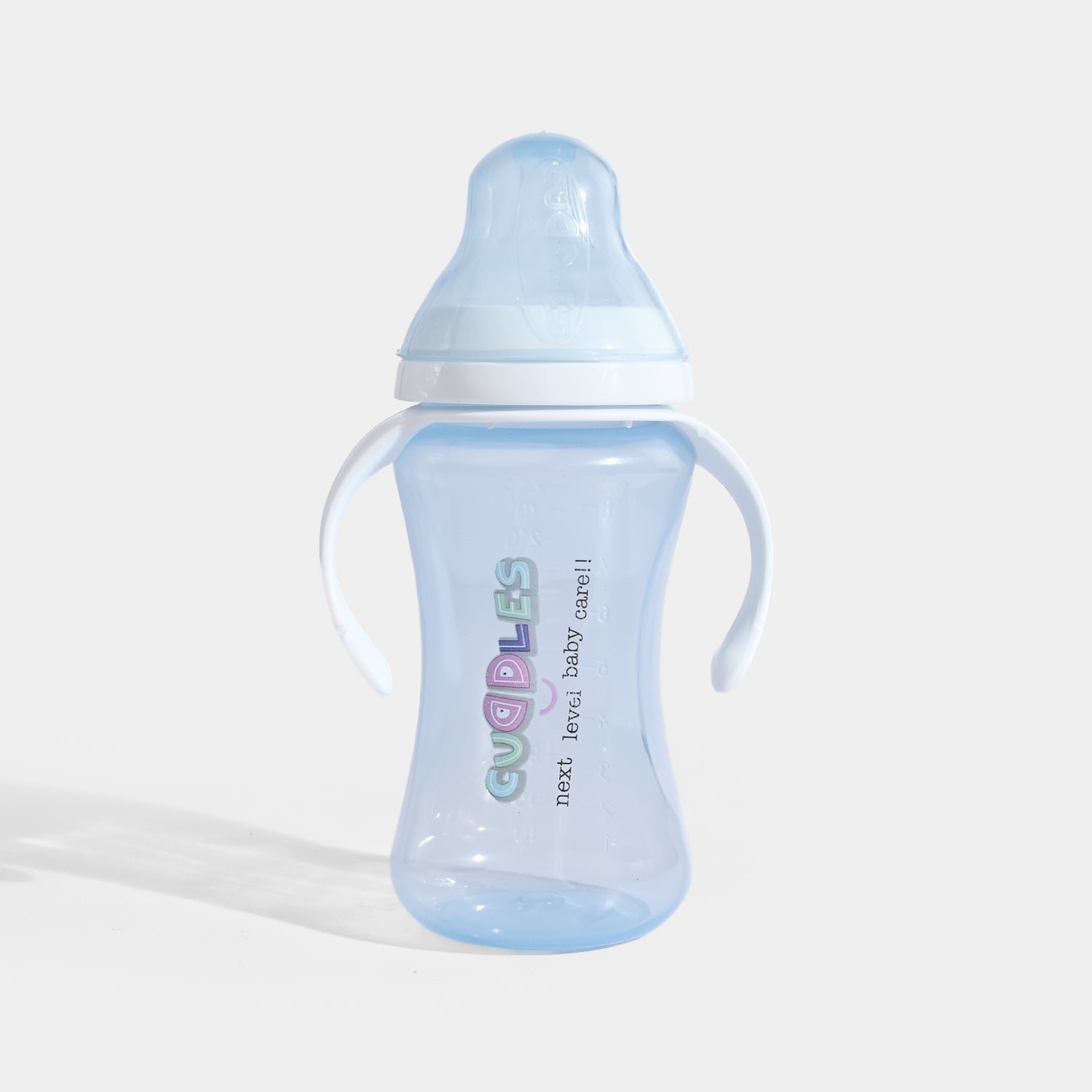 This BPA free Feeding bottle by cuddles, easy to hold with a wide neck silicon nipple for micro flow. The innovative ventilation feature reduces air swallowed during feeding, helping to reduce tummy troubles.