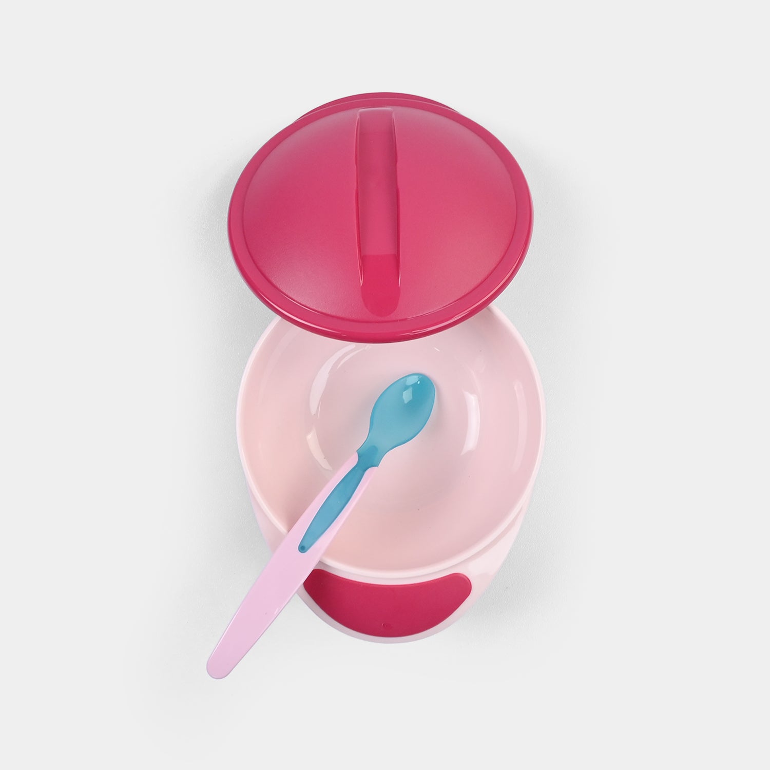 Weaning bowl set designed for self-feeding babies 6 months and up. Includes a spoon for independent eating practice during meal times.