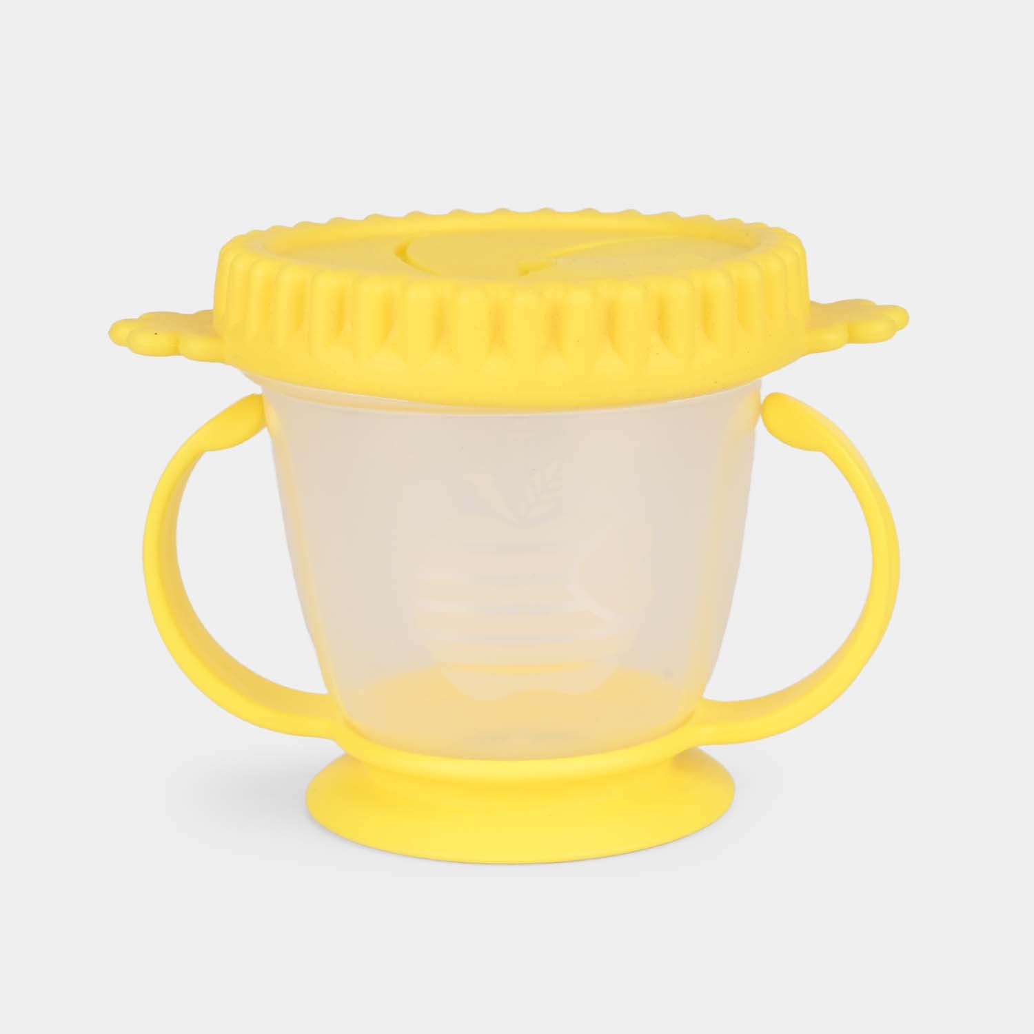 Convenient snack cup with soft spill-proof lid and dual handles for toddlers. BPA-free construction ensures safe, mess-free snacking on the go.