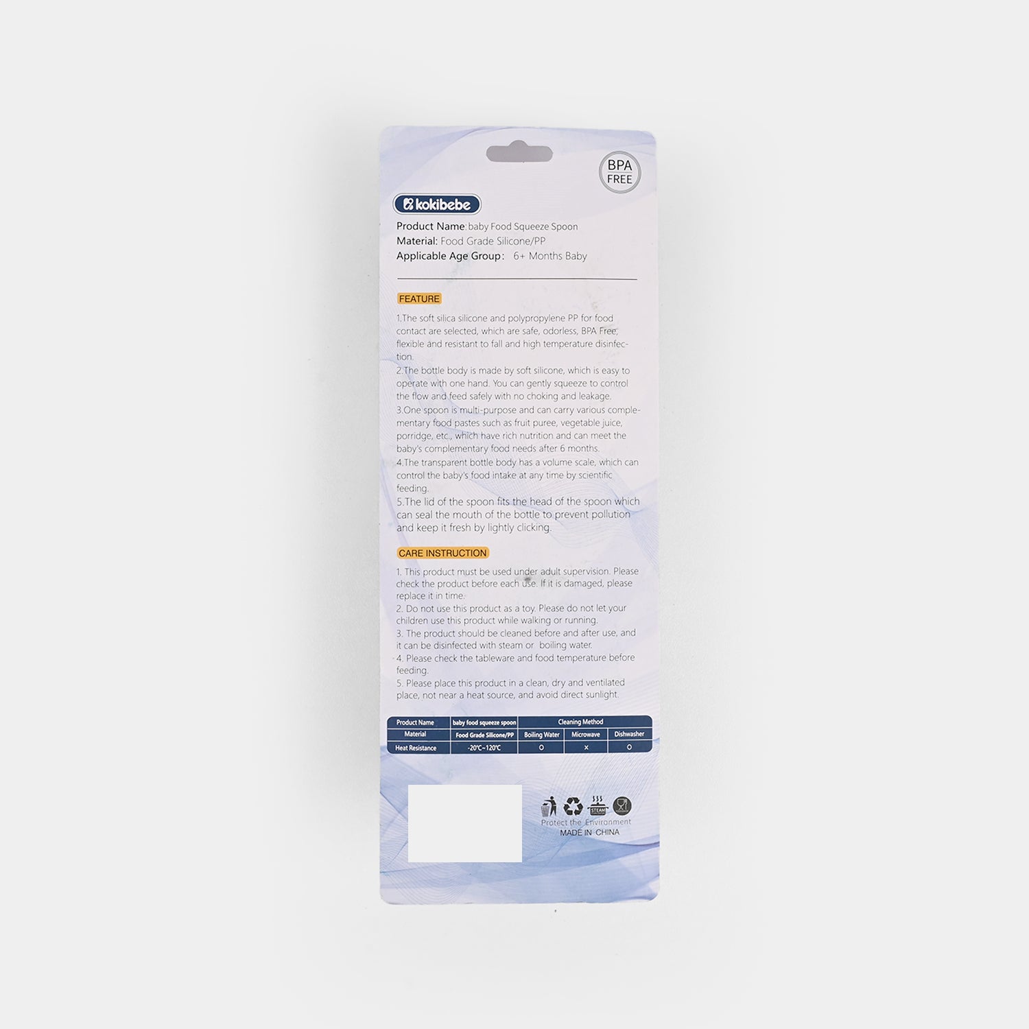 This is a baby silicone spoon set made from material that is safe for food. It is odorless, free from BPA, flexible, and resistant. The spoon's soft silicone head is comfortable for babies to use and is bite-resistant.