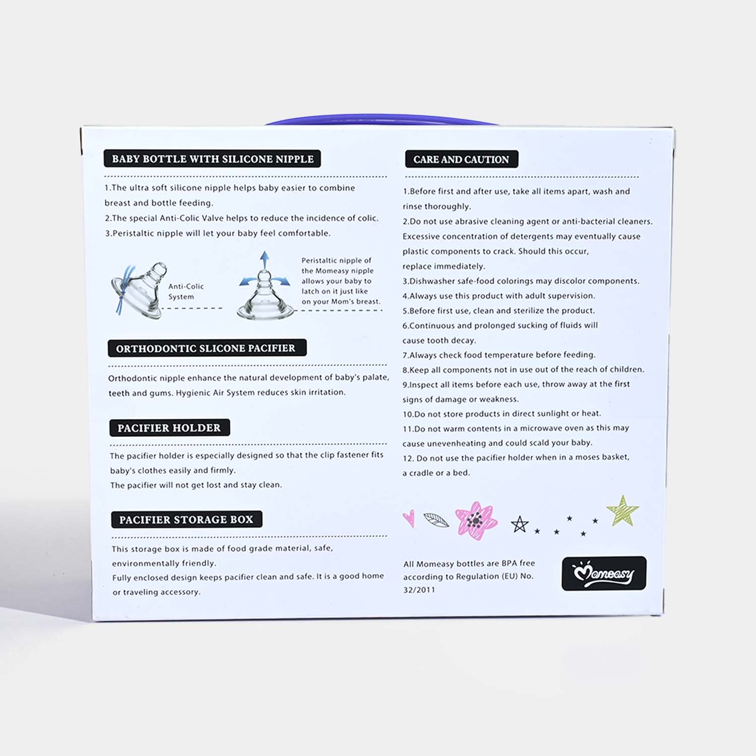 The Momeasy Feeding Set has everything you need to make feeding your little one more convenient. From bottles to pacifiers and accessories, this complete set is designed to meet the needs of growing babies while ensuring safety and ease of use.