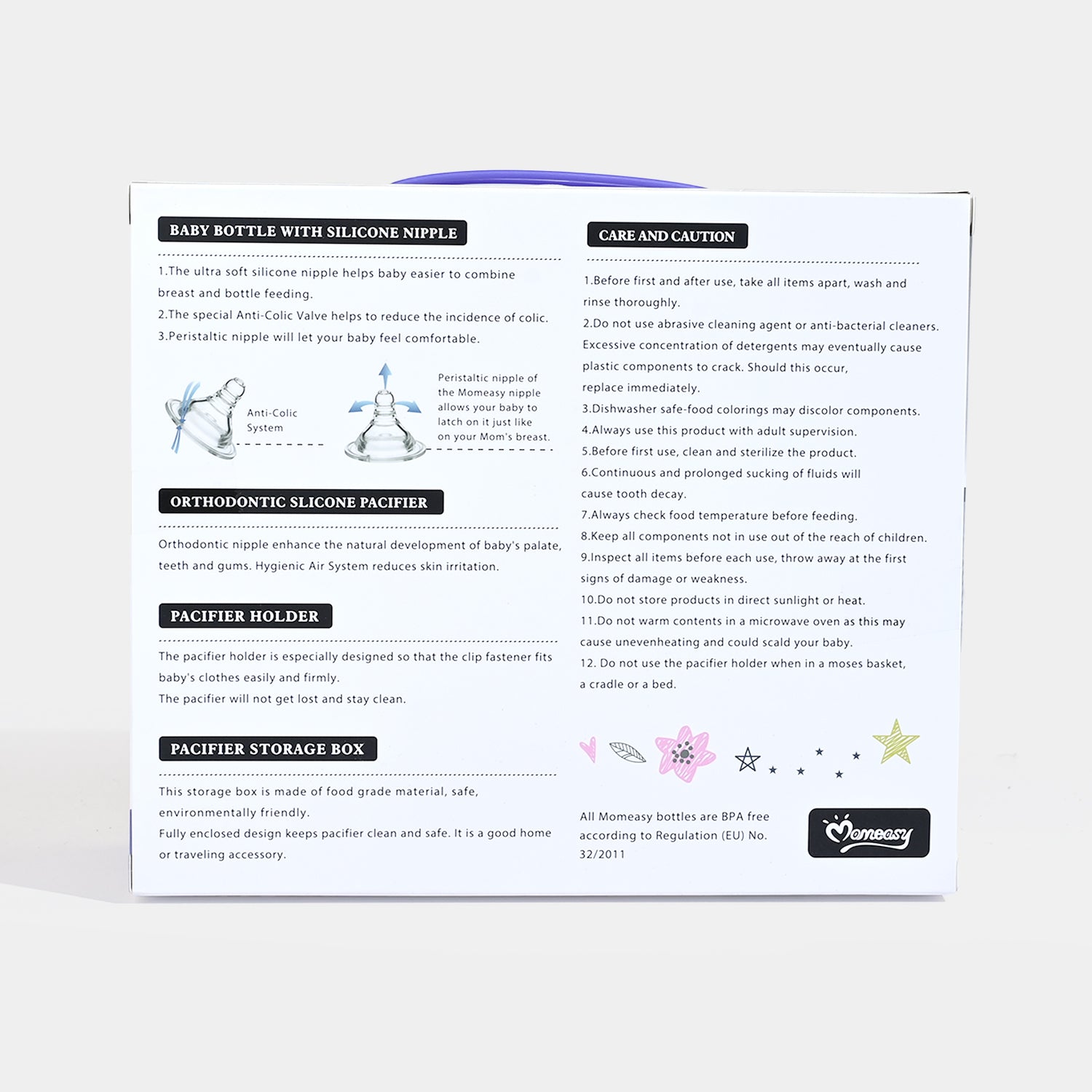 The Momeasy Feeding Set has everything you need to make feeding your little one more convenient. From bottles to pacifiers and accessories, this complete set is designed to meet the needs of growing babies while ensuring safety and ease of use.
