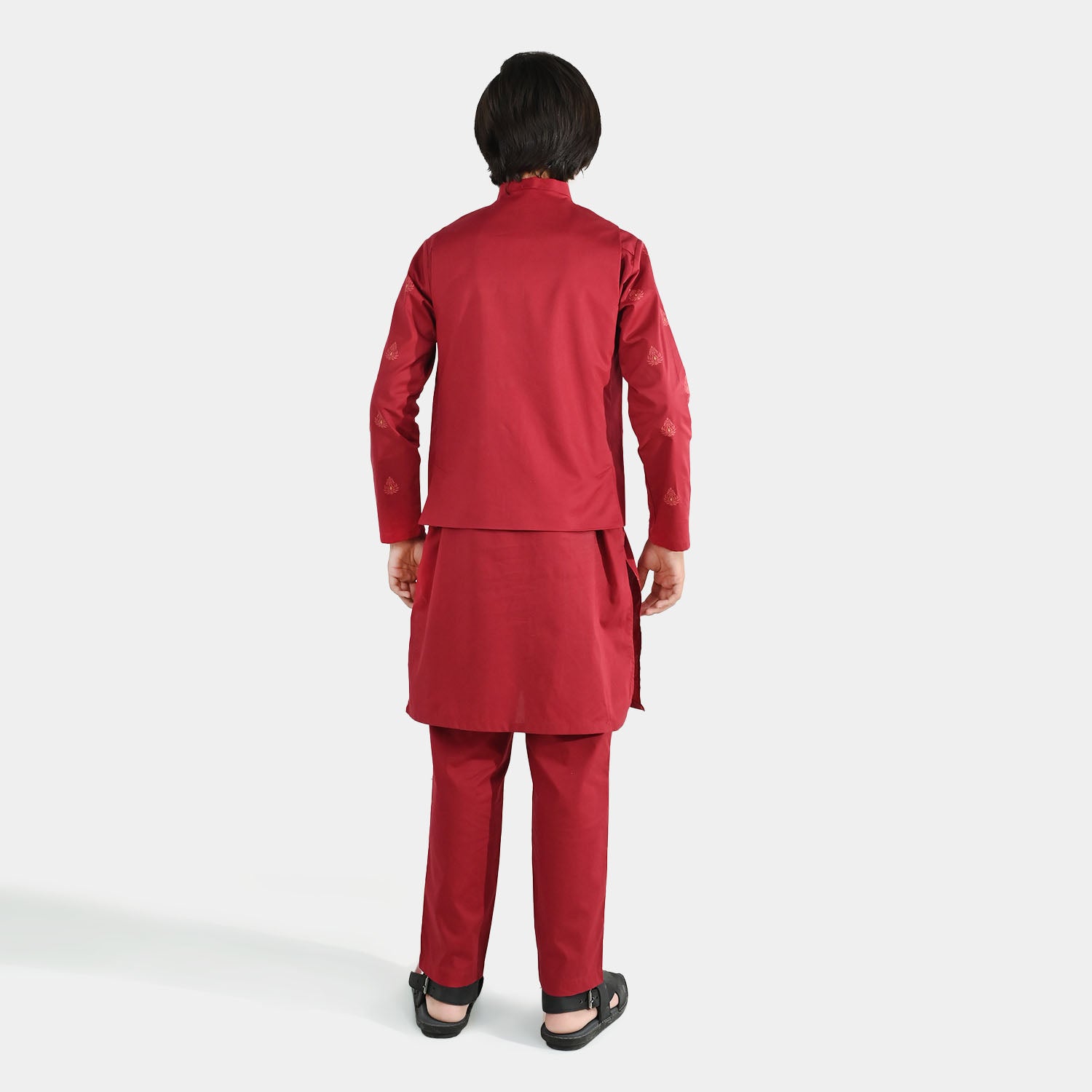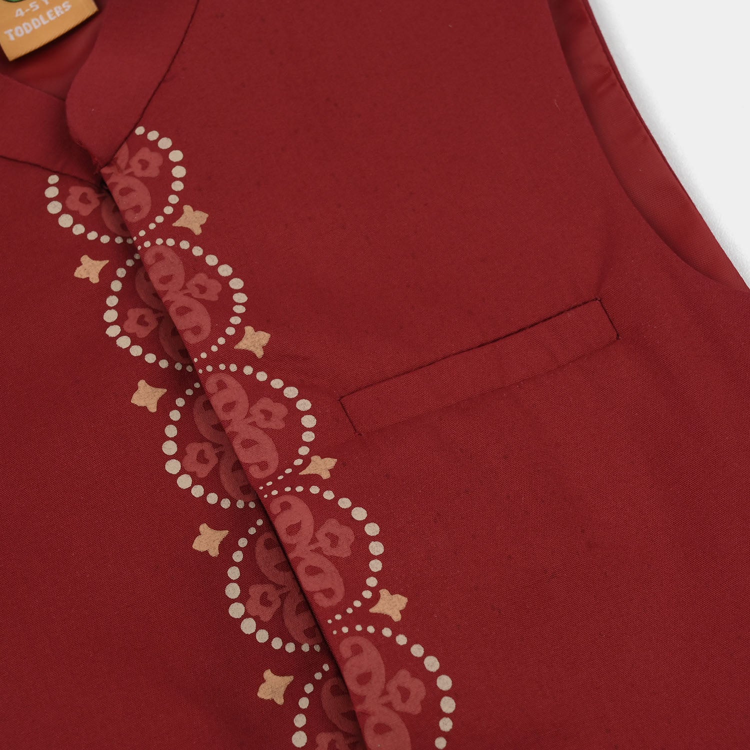 Boys Cotton Poplin Printed 3-Piece Suit (Rung Saz) - Red