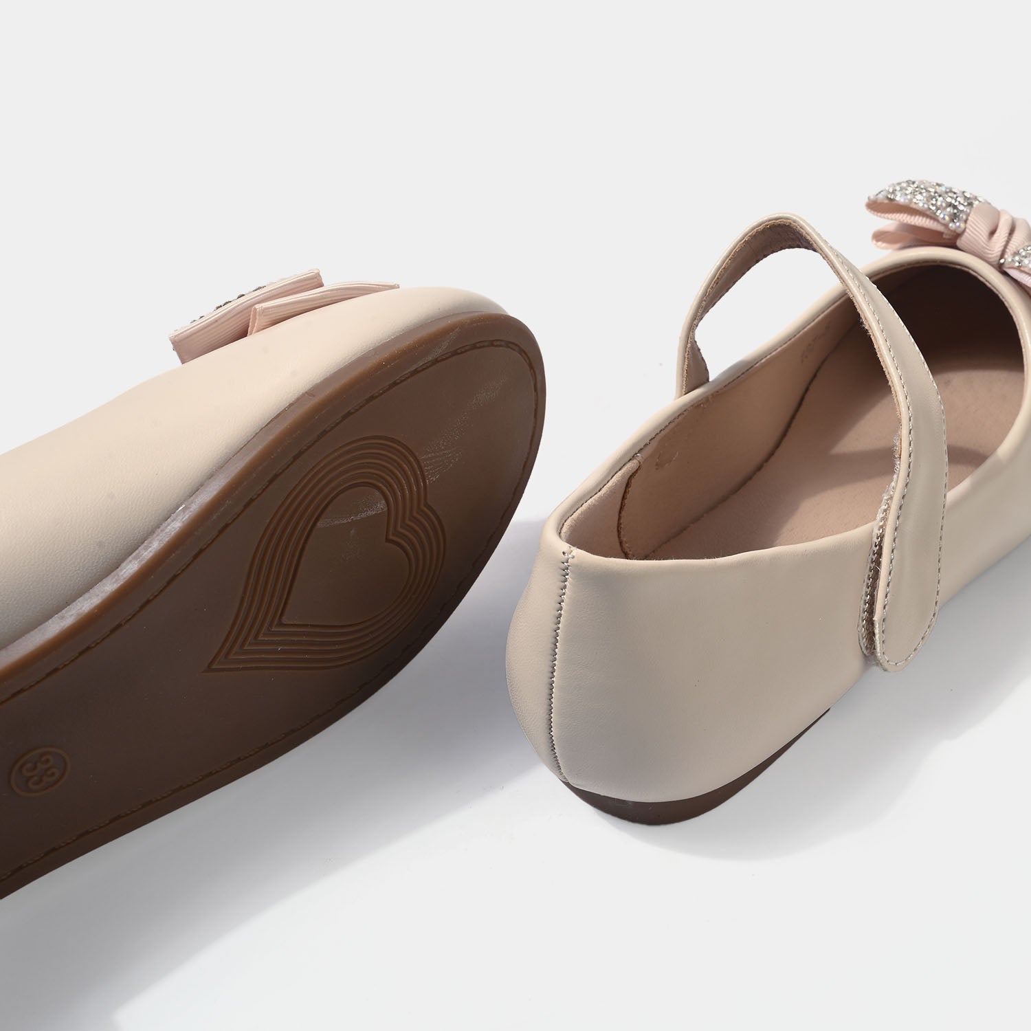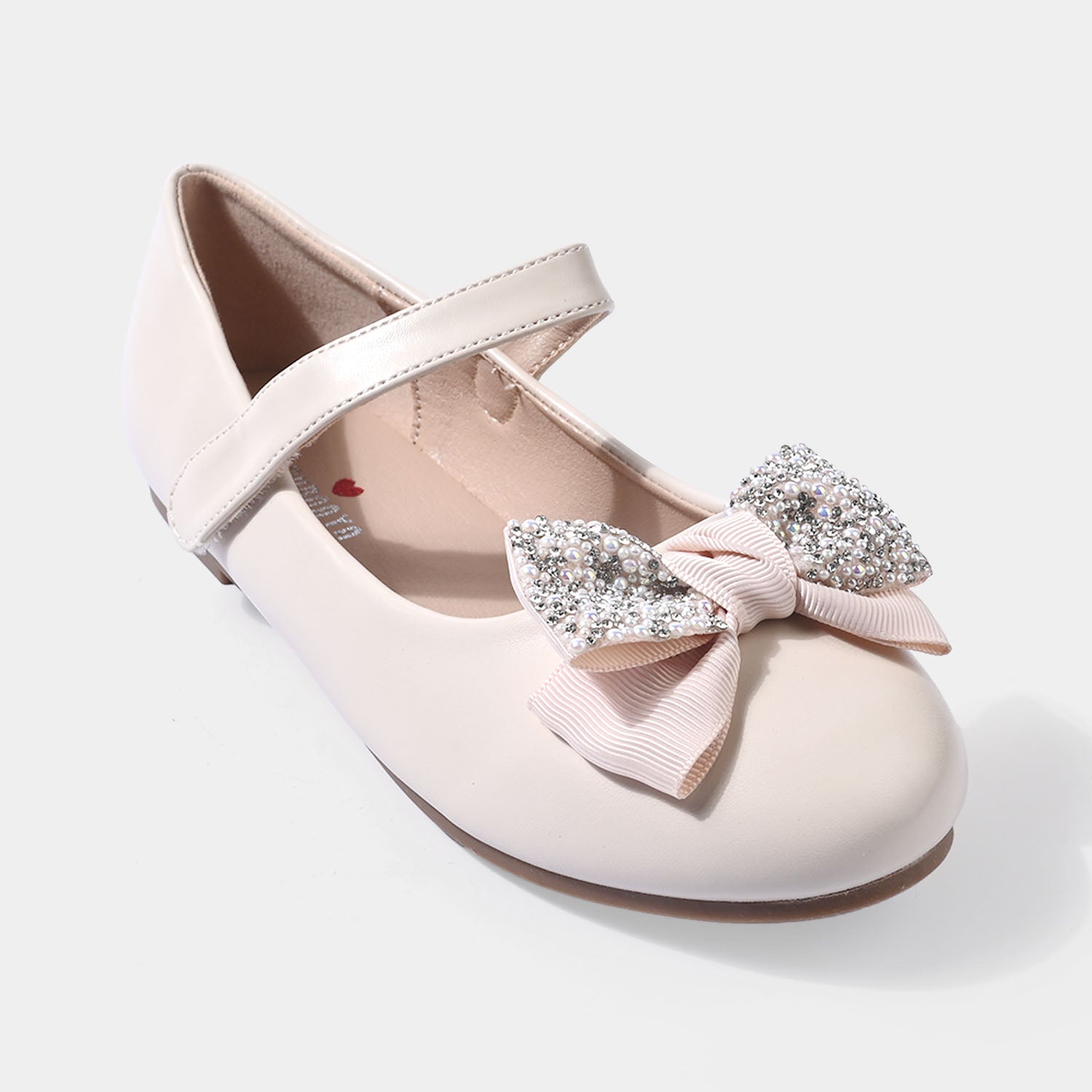 These girls’ pumps in beige feature a delicate textured design with a glittery bow embellishment and secure strap closure, making them perfect for both formal and casual occasions.