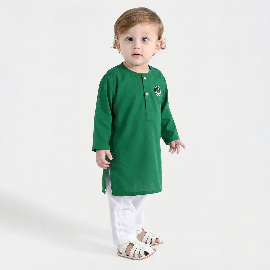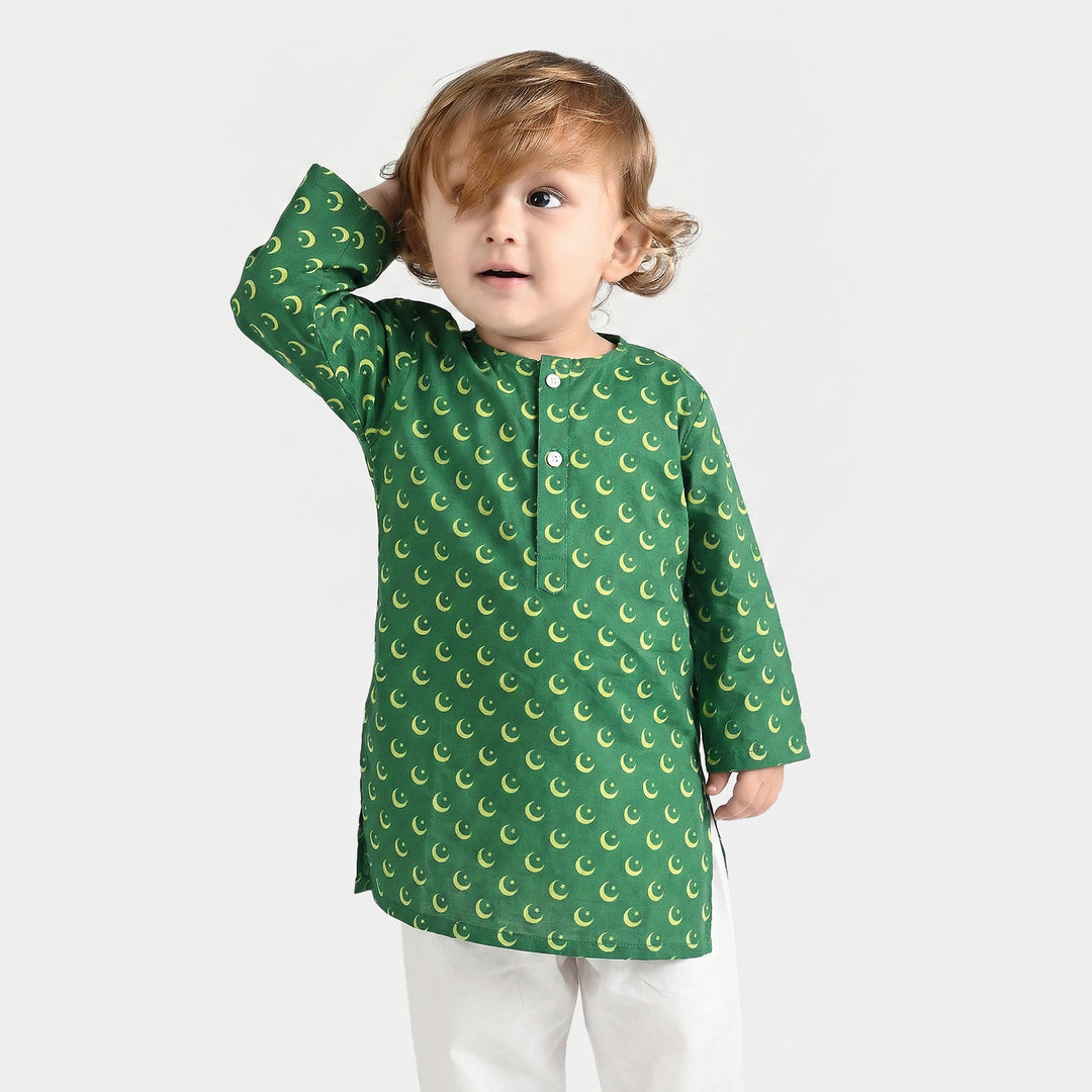 Infant Boys Jacquard Printed Kurta (Self Print)-T.Green