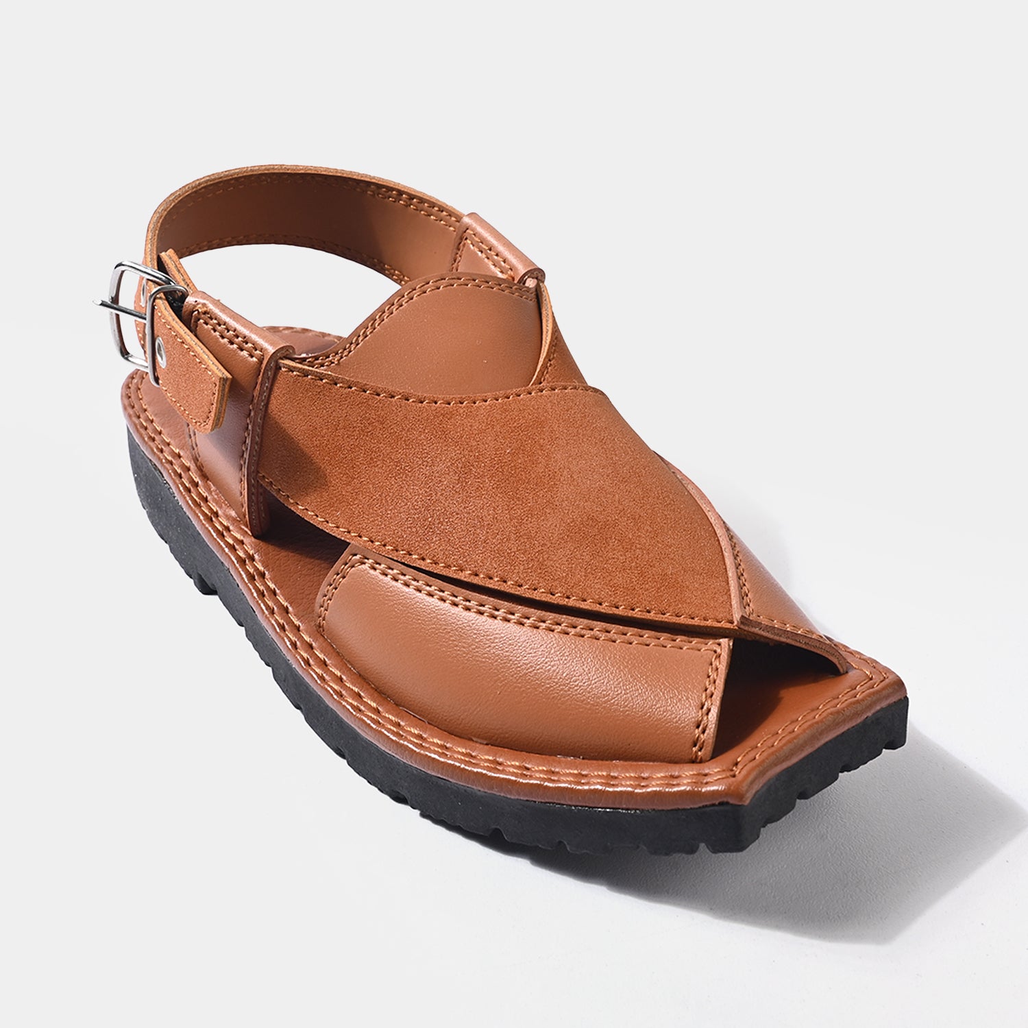 Boys' peshawari sandals in brown/camel, perfect for everyday wear or special occasions, and ideal to pair with Eastern outfits.