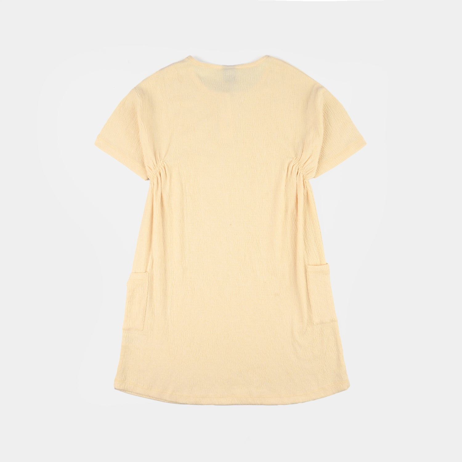 Bachaa Party brings you the best price Girls Poly Crinkle Knitted Frock-Yellow with express shipping all over Pakistan.