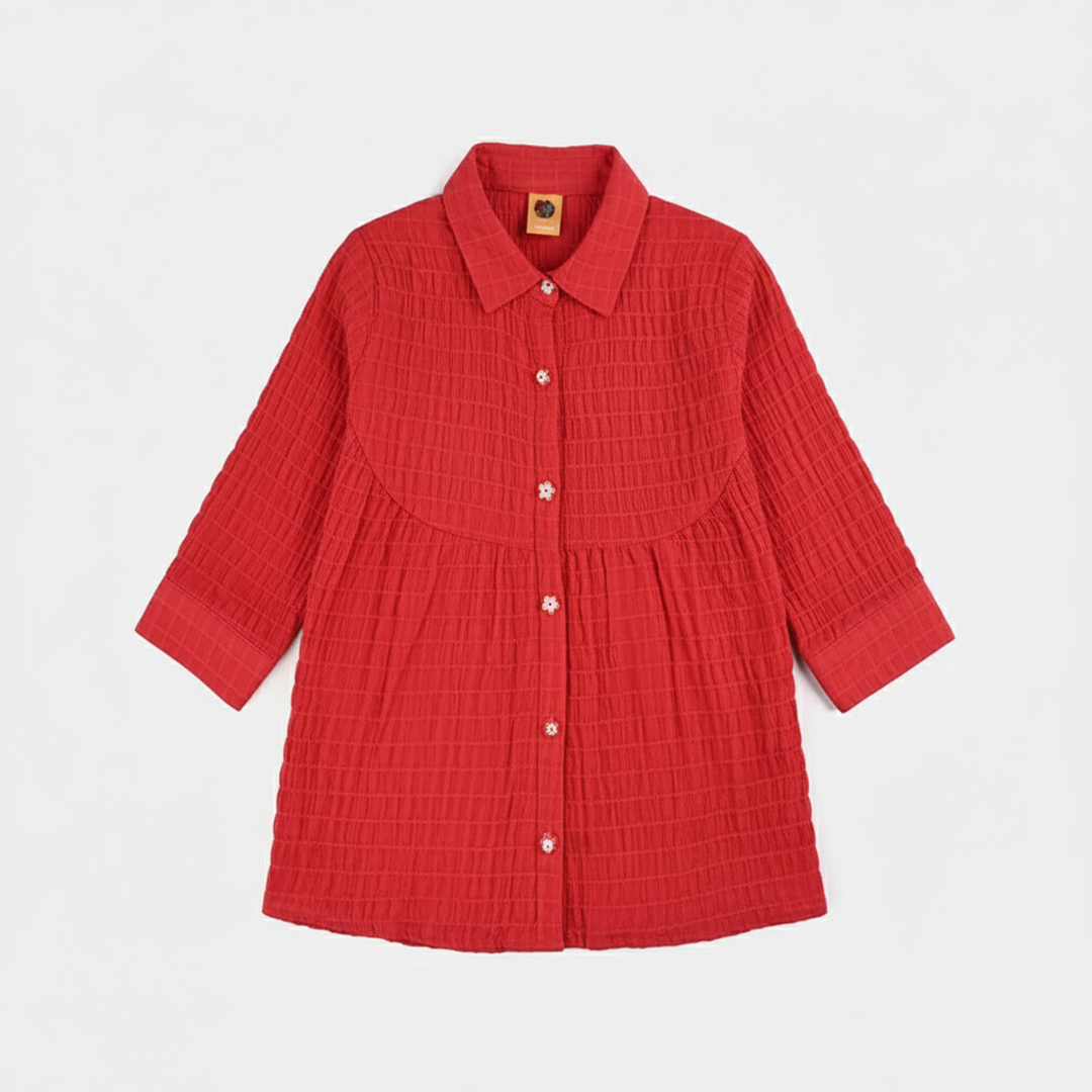Girls Cotton Poplin Casual Frock Red Floral - Multi