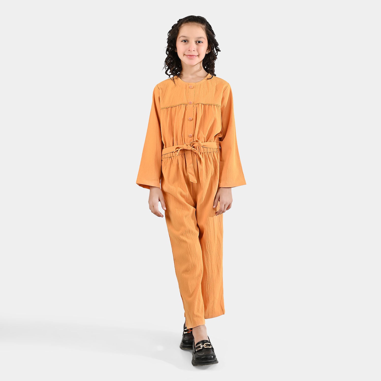 Minimal yet stylish, this mustard cotton jumpsuit features dainty floral buttons, and bow at the front. Lightweight and breezy, it’s an effortless one-piece wonder for playful days.