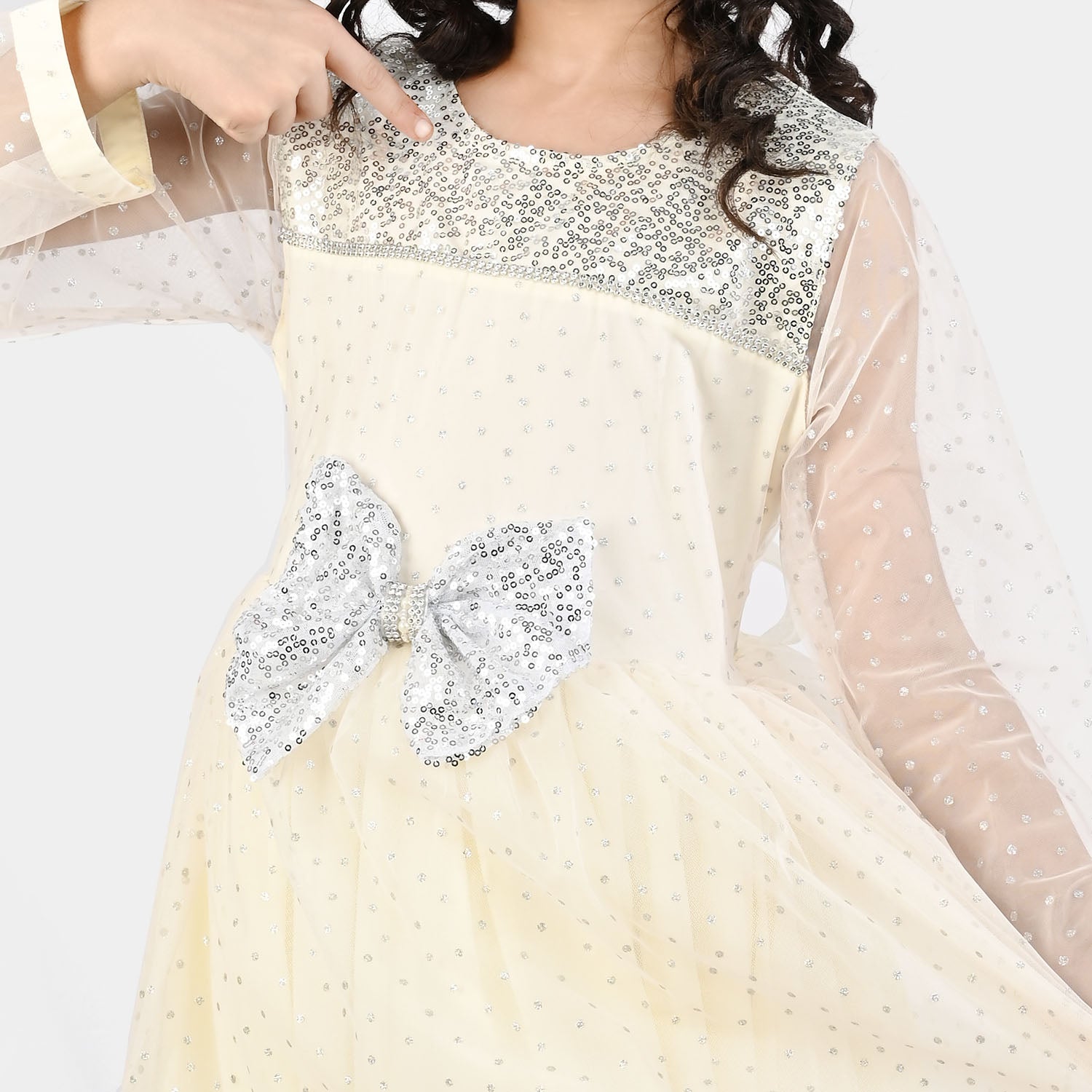 This dress is made for little stars! Shimmering polka dots and delicate silver sequin embellishments sparkle on soft organza, while a sweet bow in front completes the dreamy look. Perfect for celebrations where she’s the brightest sparkle in the room.