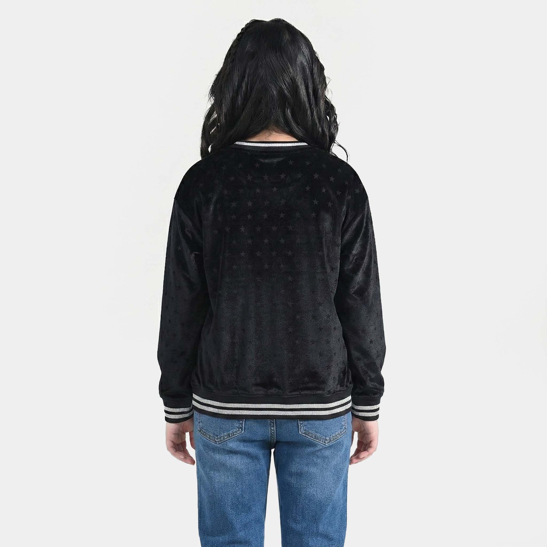This Black girl’s sweatshirt in soft plush features a round neck, full sleeves, and a star print. It pairs perfectly with any bottoms or pants.