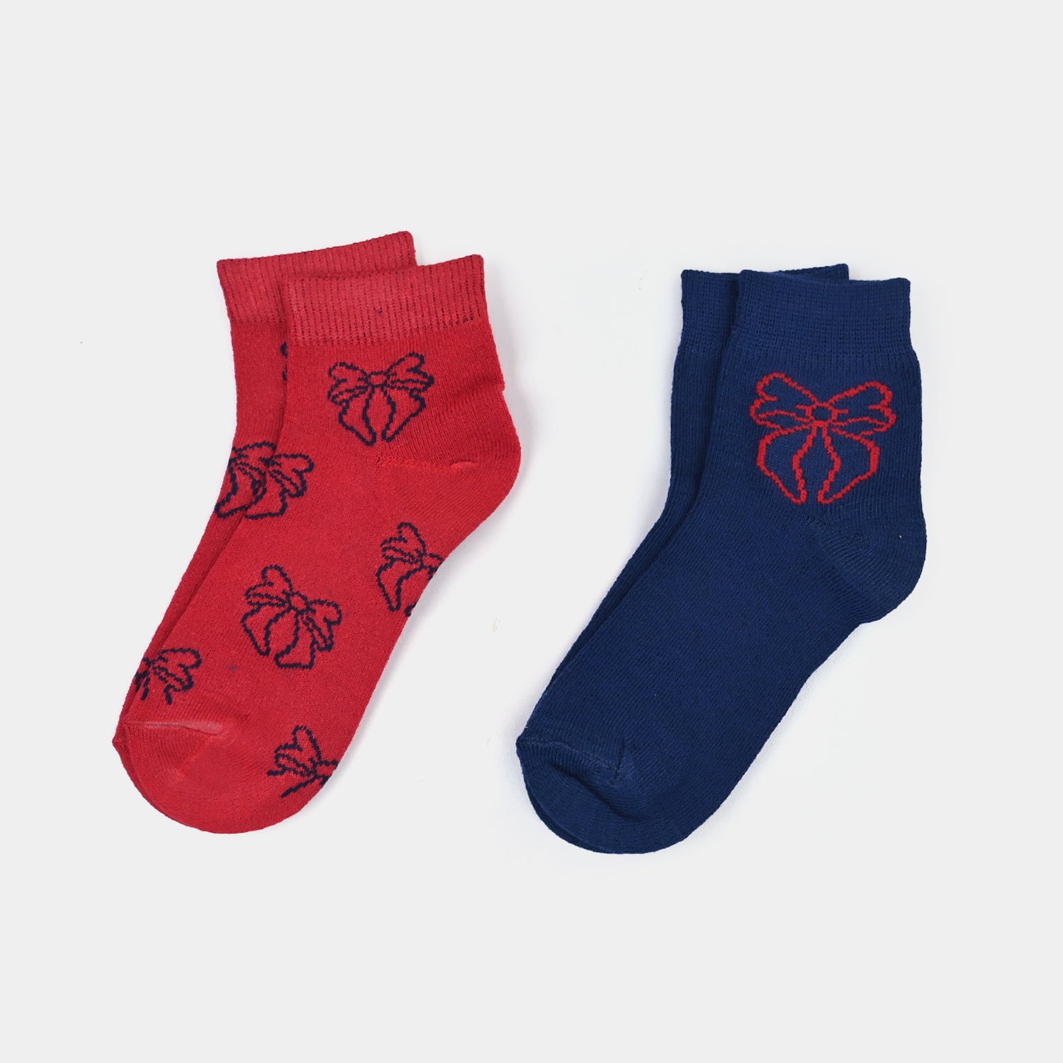 Girls Cotton Socks Pack of 2 Bow - Navy/Red
