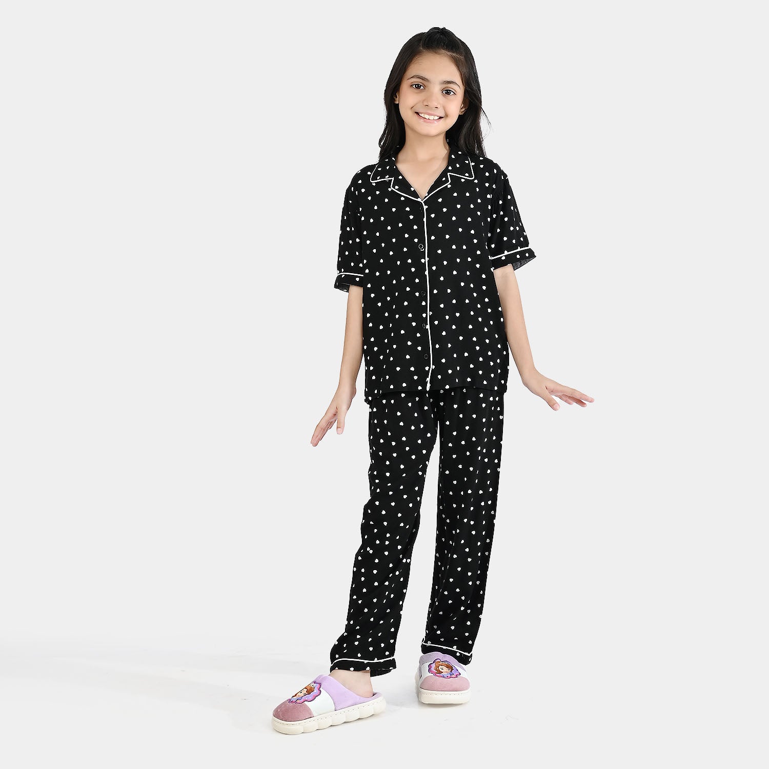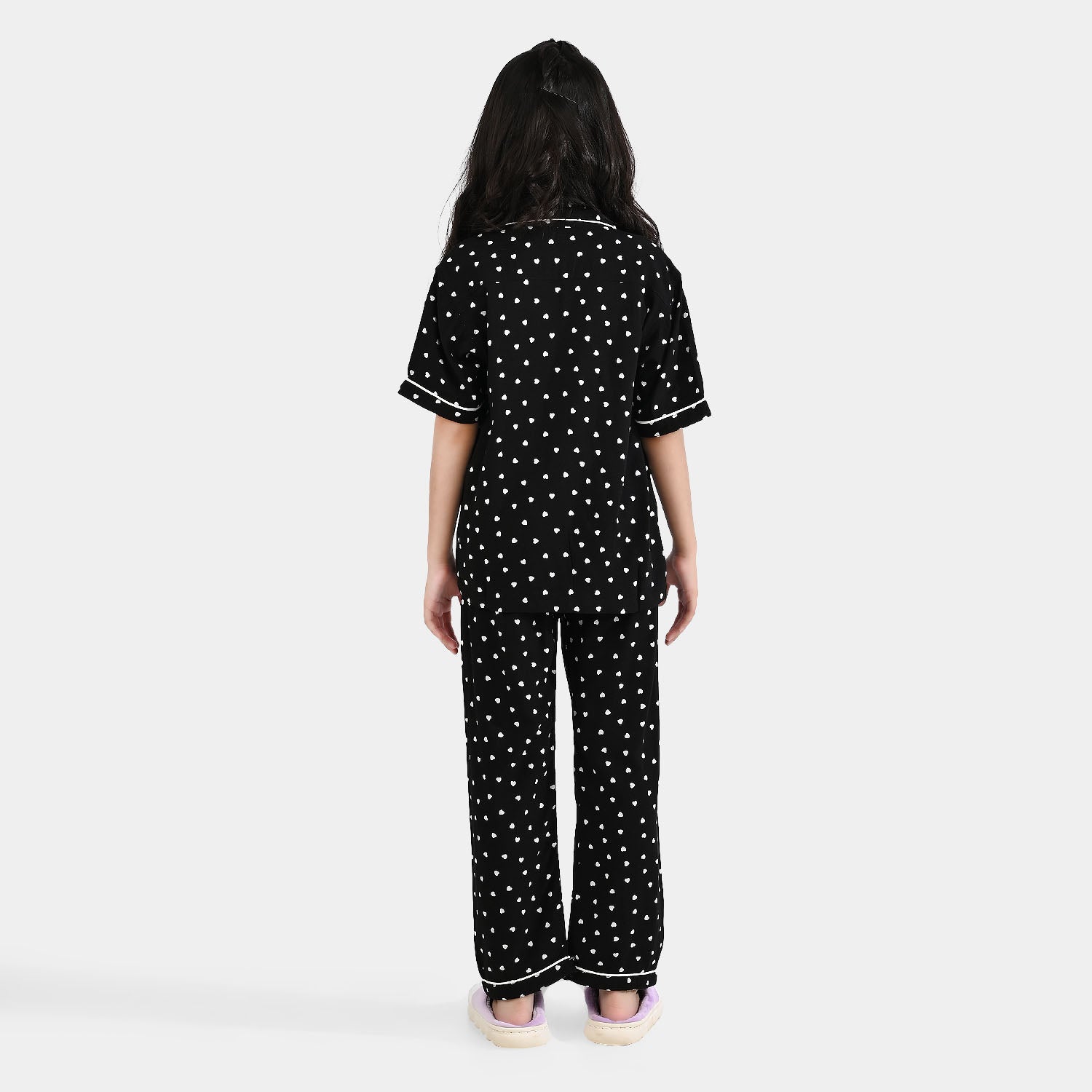 Bachaa Party brings you the best price Girls Viscose Night Suit-Heart-BLACK with express shipping all over Pakistan.