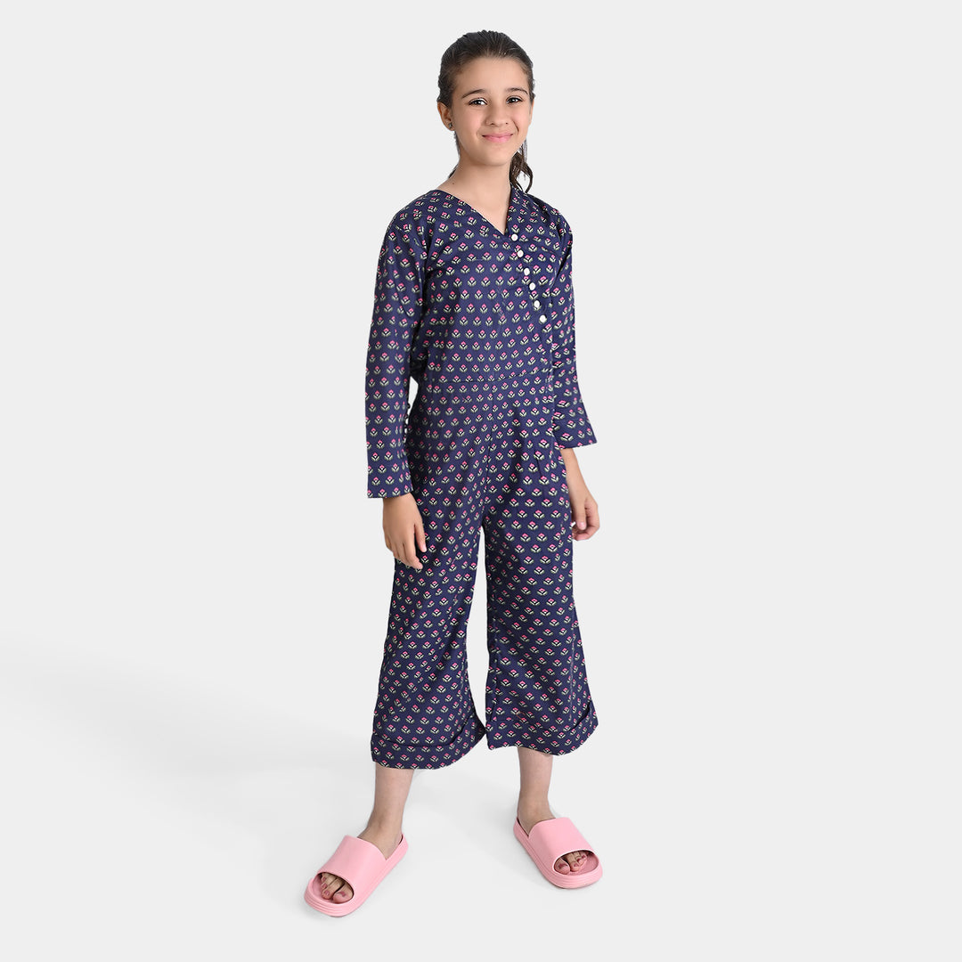 Girls Cotton Poplin Jumpsuit Daffodils-Purple