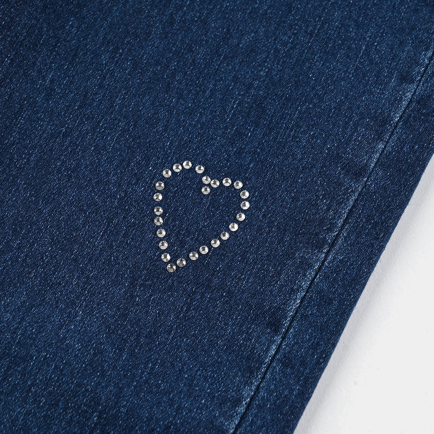 Everyday denim with a sparkle adorned with sweet sequined hearts, adding a playful shine to her style.
