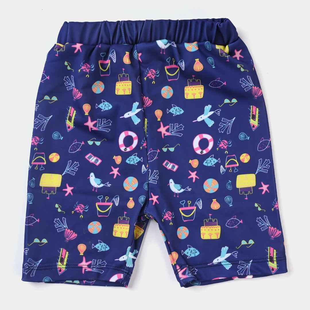 Girls Lycra Jersey Tights Emb Net Frill-Navy Blue
