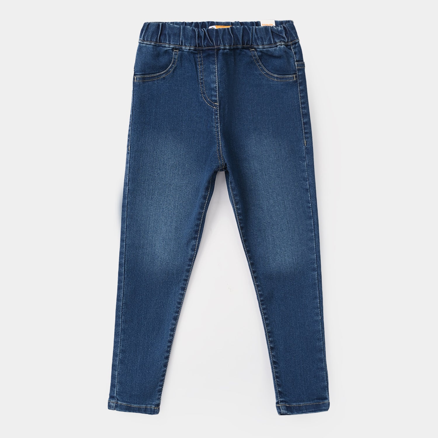 Girls’ mid-blue denim stretch jeggings with a straight fit for everyday wear.