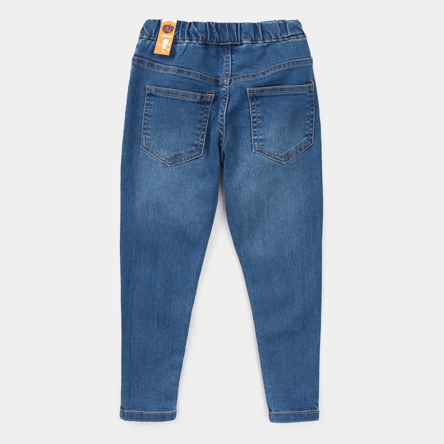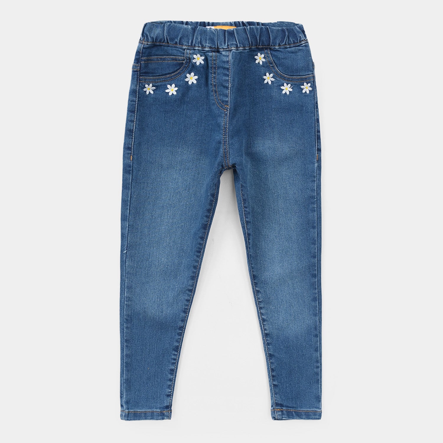 Girls Denim Stretch Jeggings (Flower) - Mid Blue