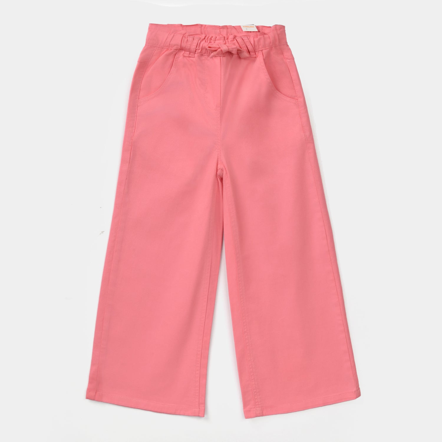 Girls’ paperbag pants in pink, featuring a wide-leg fit and pockets for a stylish, comfortable look.