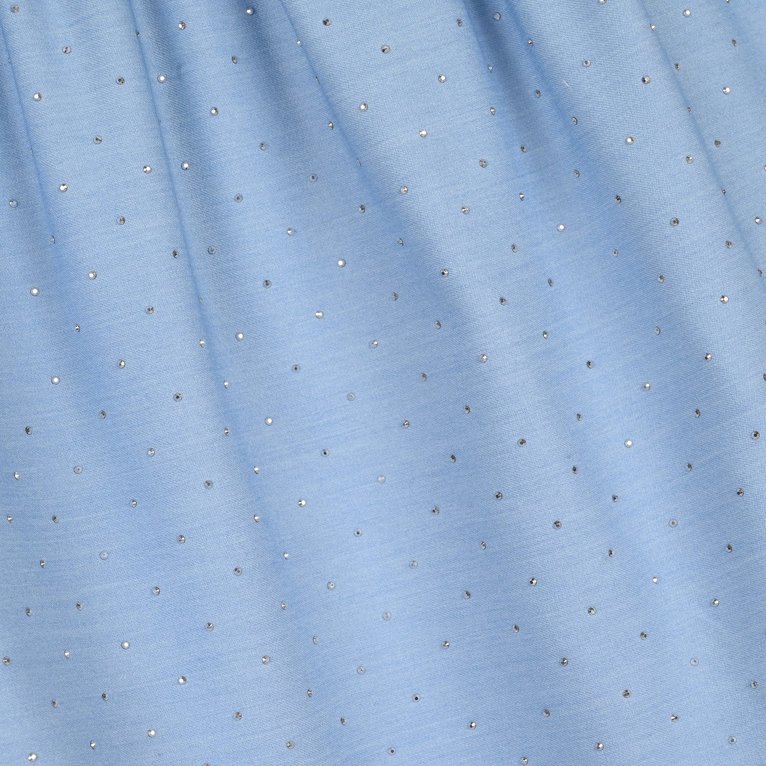 Girls' sky blue poly cambric short skirt featuring stud detailing, perfect for a cute and comfortable everyday look.