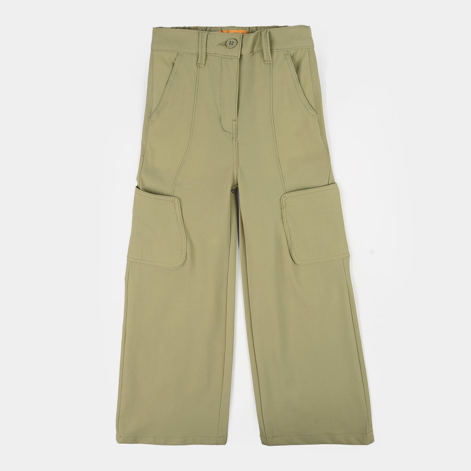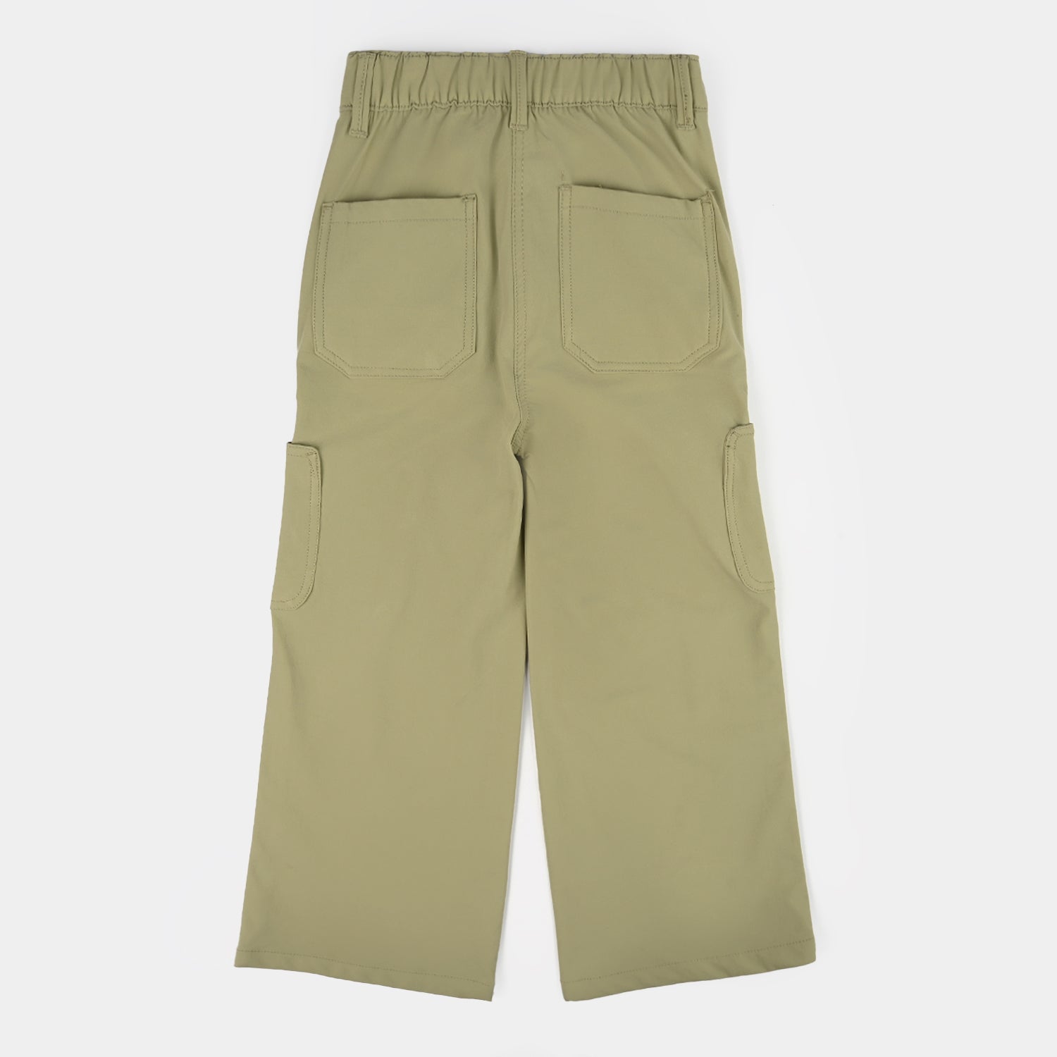 Girls' green poly twill pants featuring a wide-leg cargo style and comfortable fit, perfect for everyday wear.
