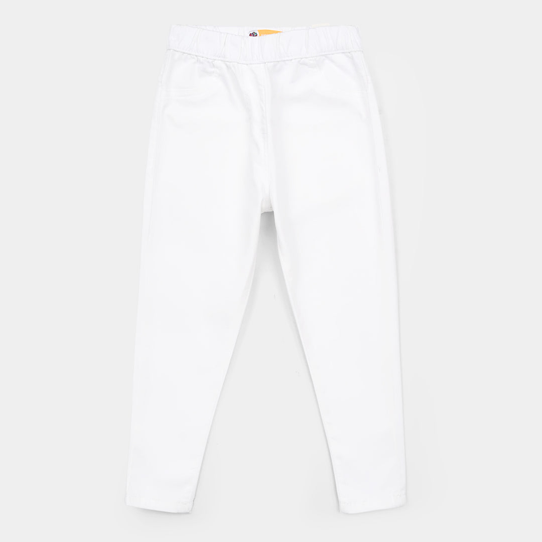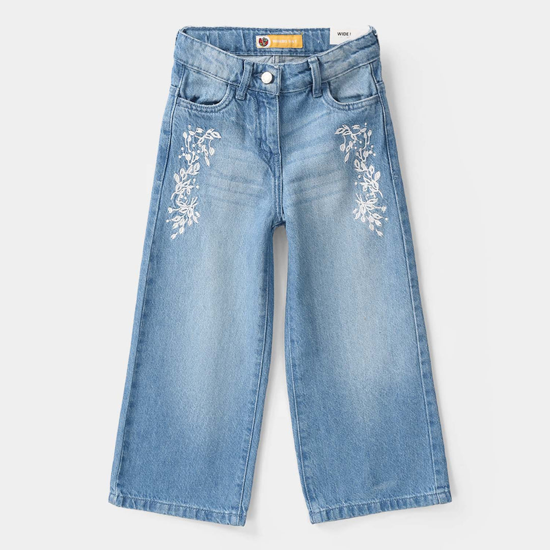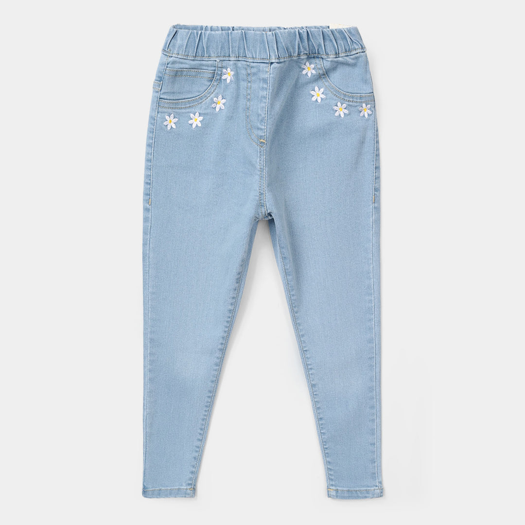 Girls Denim Stretch Pant Big Pearls-Ice Blue