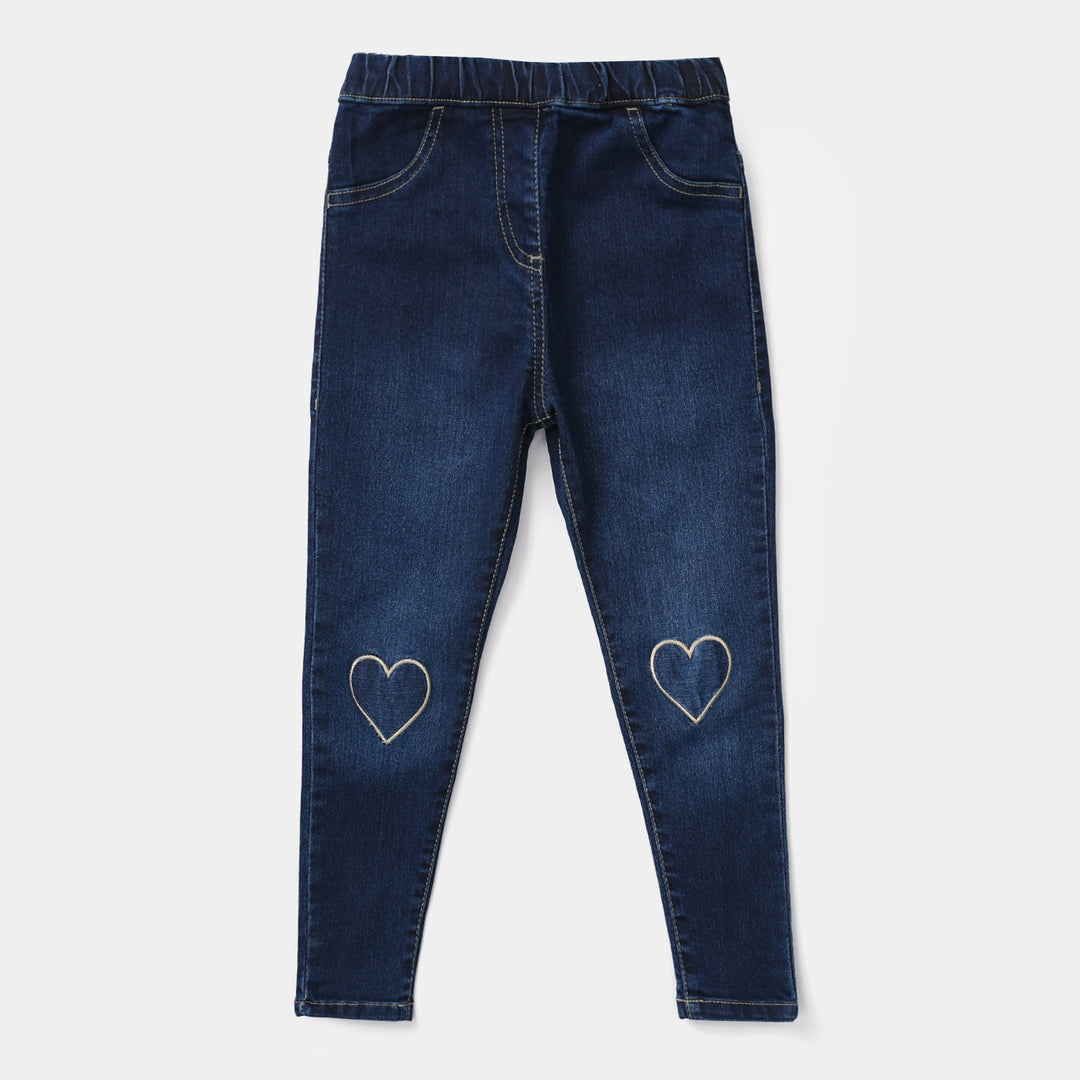 Girls Denim Stretch Pant Glitter Star-Mid Blue