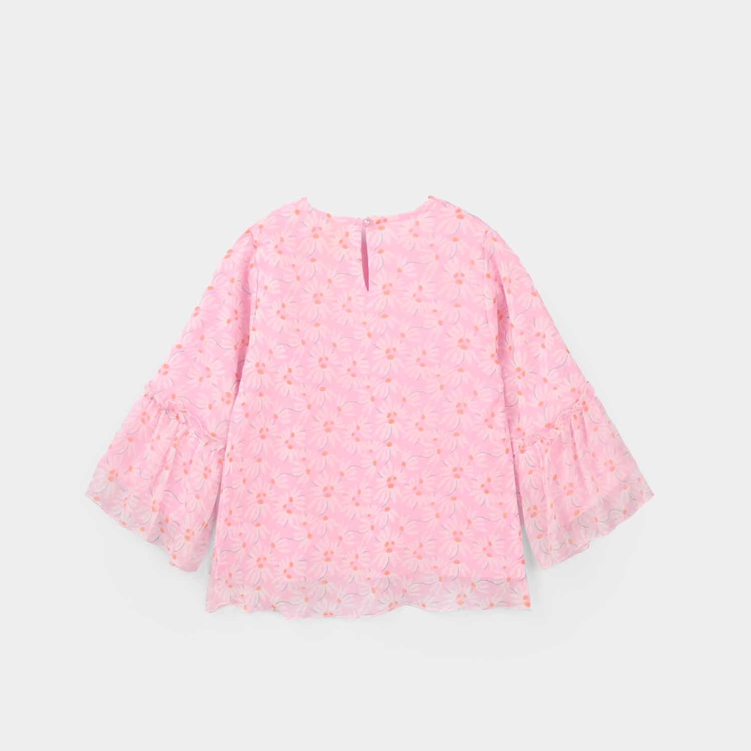 This pink girls chiffon casual top features a floral print and full sleeves with pleated detailing, can be worn with any bottoms for a cute, everyday look.