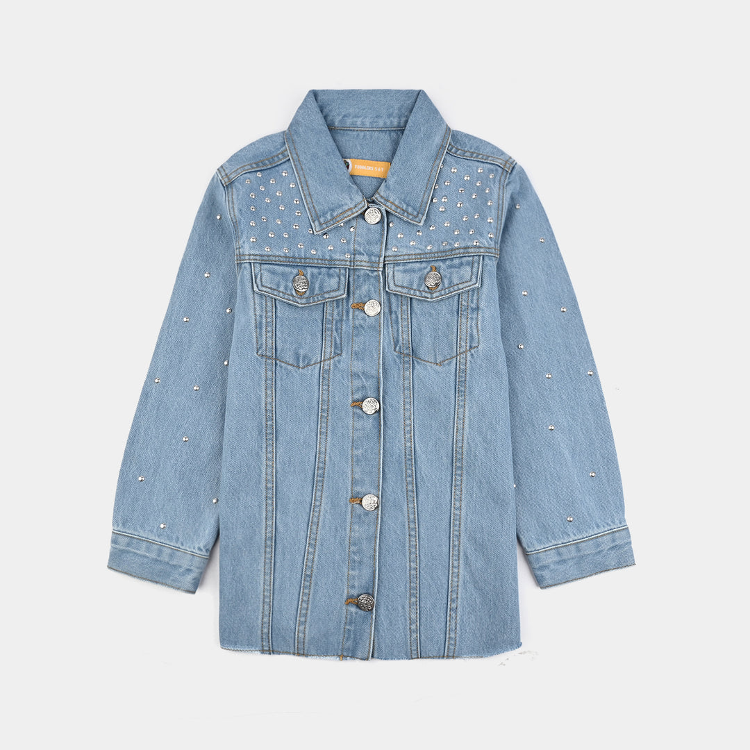 Girls Denim rigid Jacket Silver Studs-Mid Blue