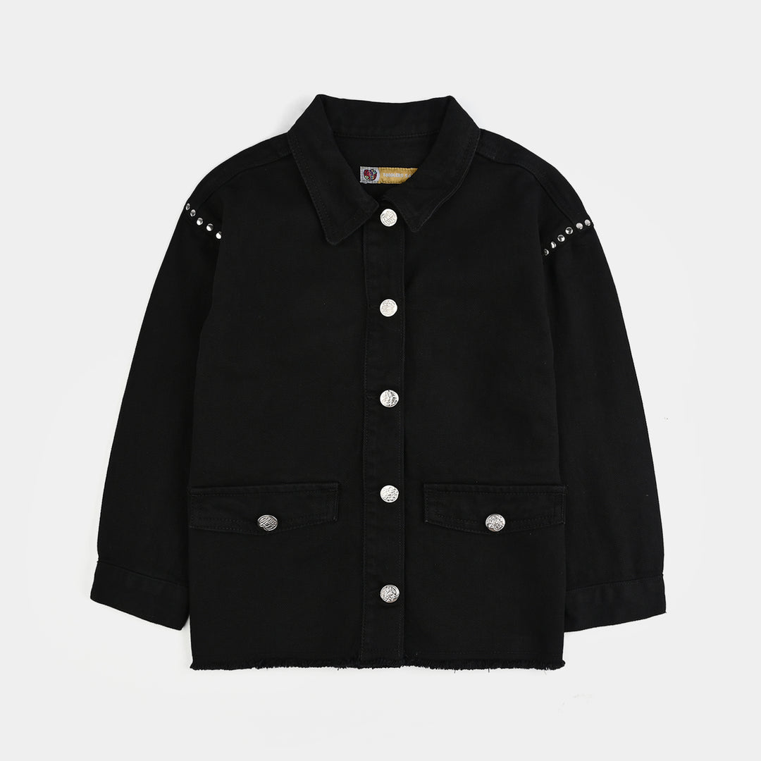 Girls Denim rigid Woven Jacket Sequins Sparkle-BLACK