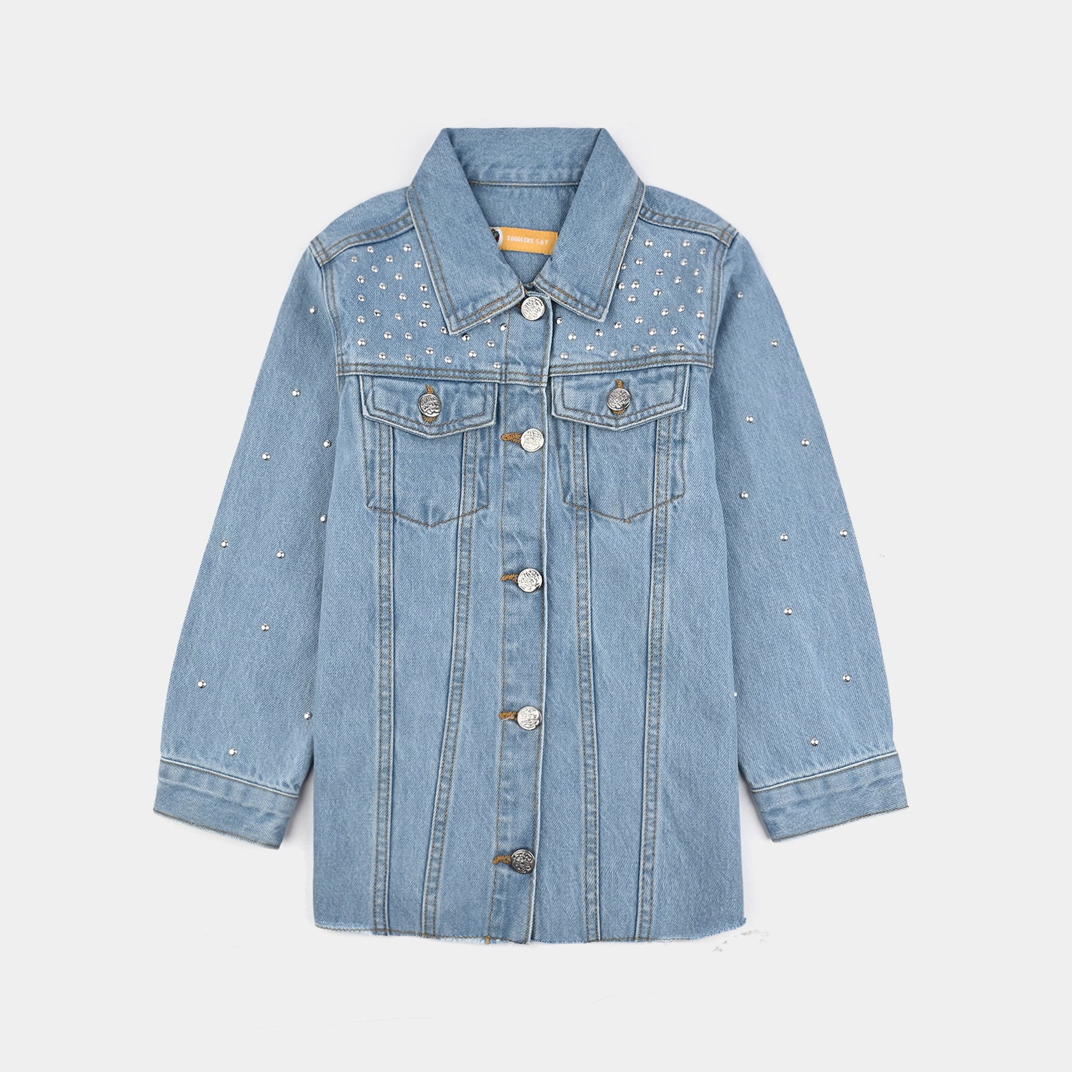 Girls Denim Stretch Woven Jacket Pearls-Light Blue