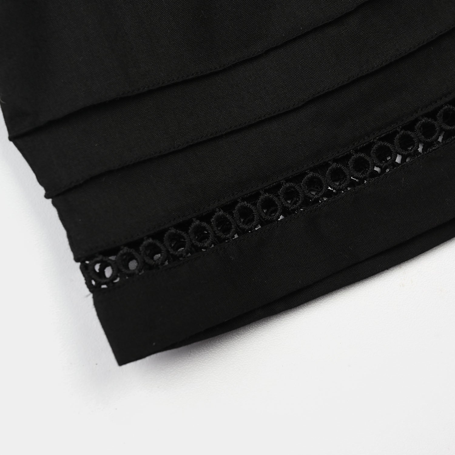 These black cotton culottes feature a comfortable, loose fit with pintex and lace detailing, making them perfect for pairing with tops or tunics for a complete look.