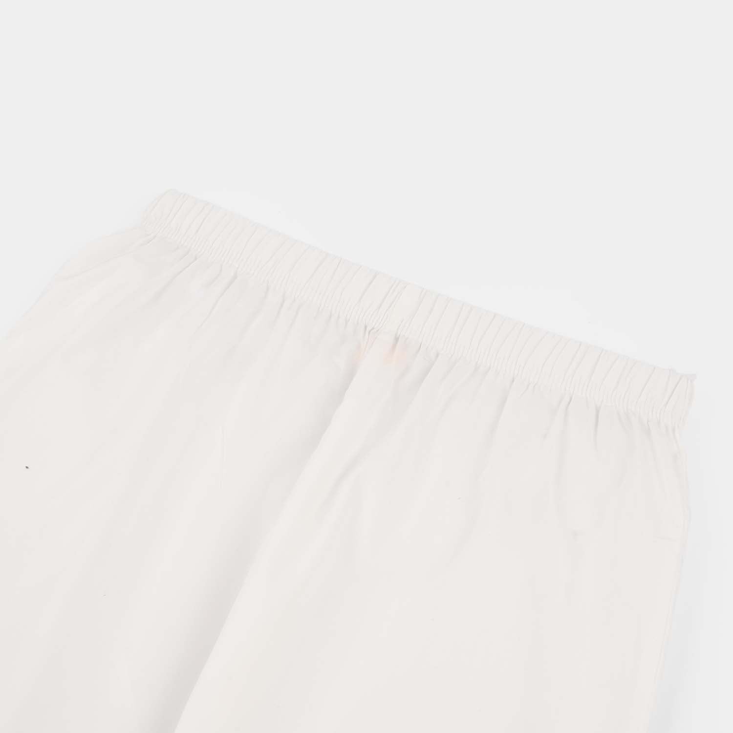 These white cotton pants for girls feature a straight fit with hem lace detailing and hanging tassels, perfect for casual or festive wear.