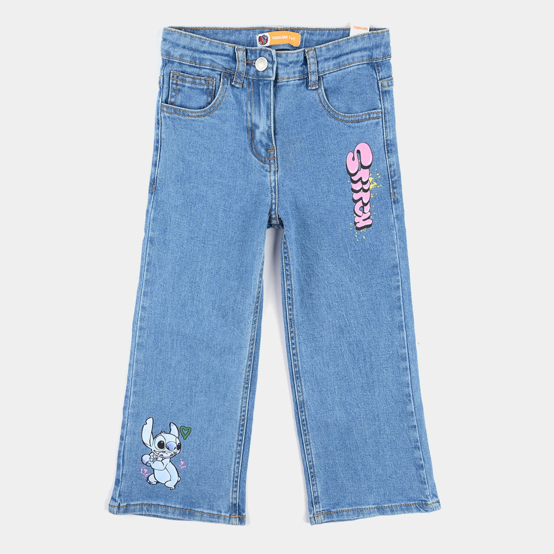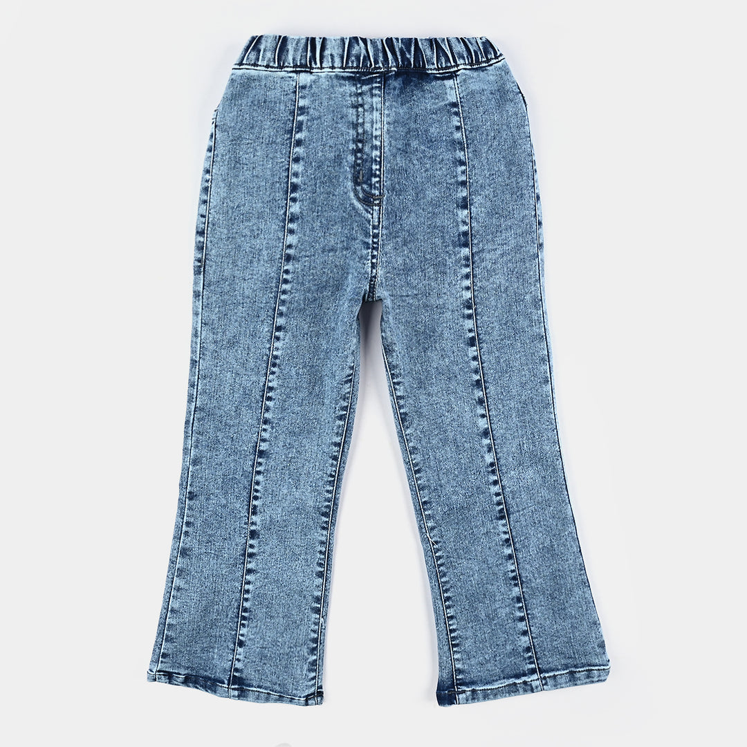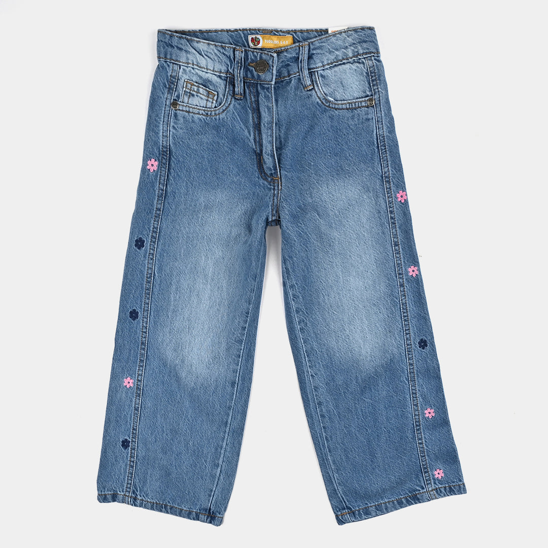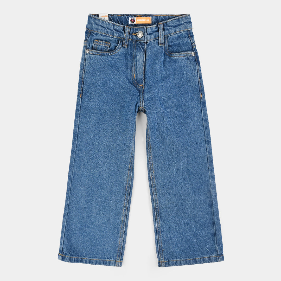Girls Denim Stretch Pant Basic Wide Legs-Mid Blue