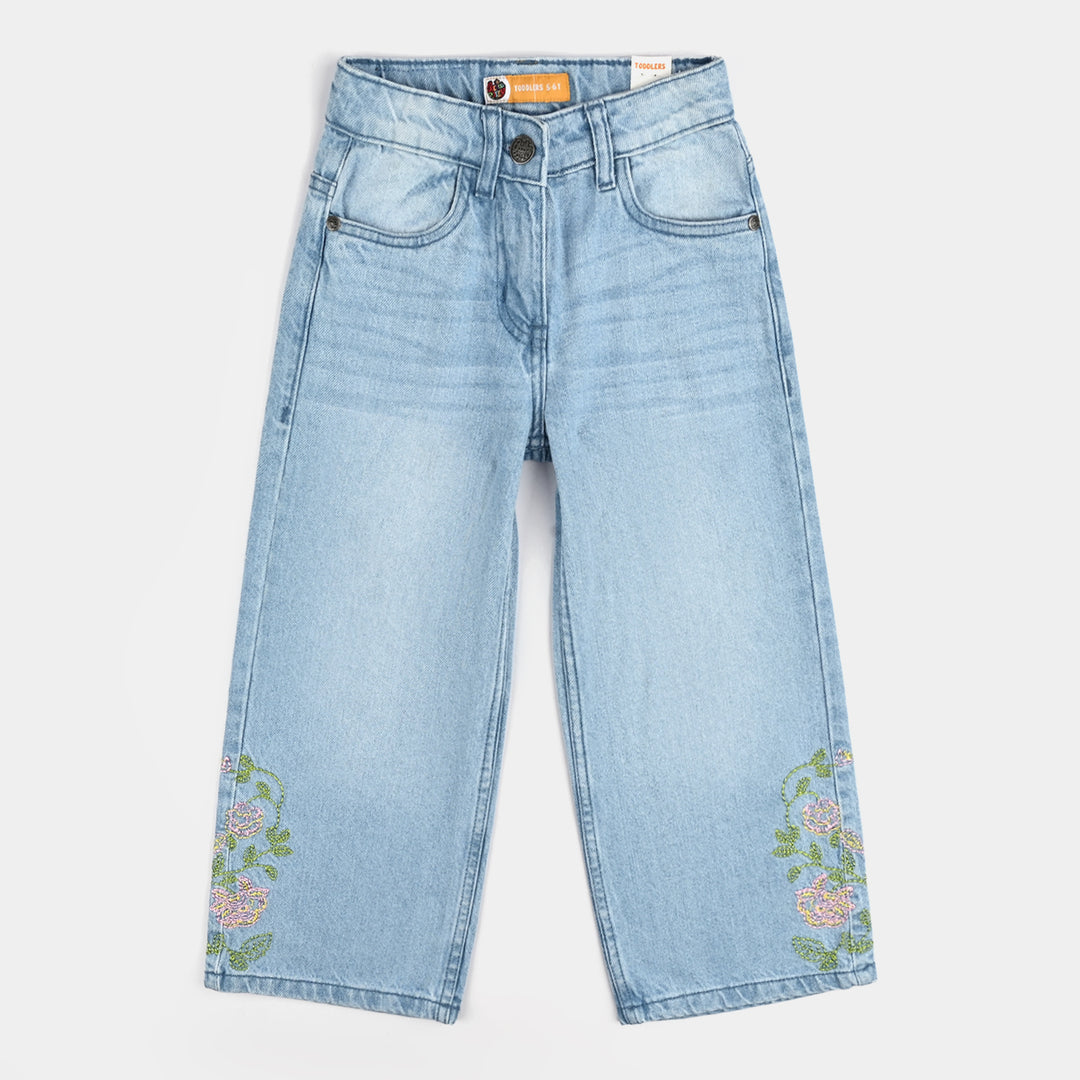 Girls Denim Stretch Pant Ethnic Bottom-Light Blue