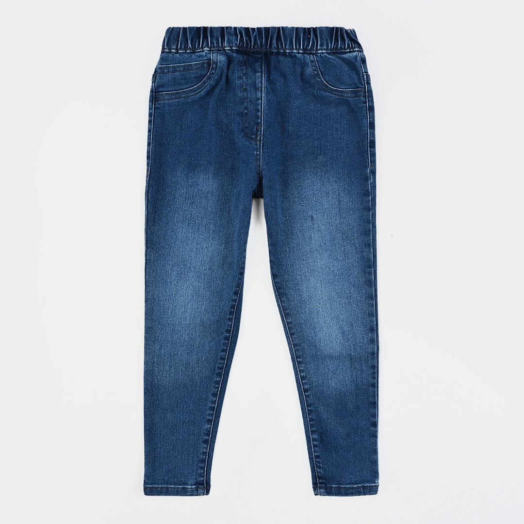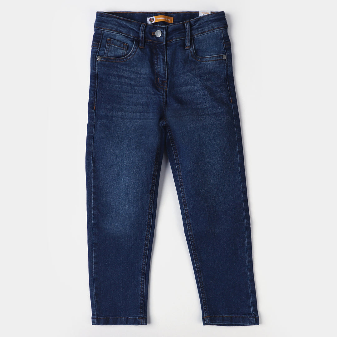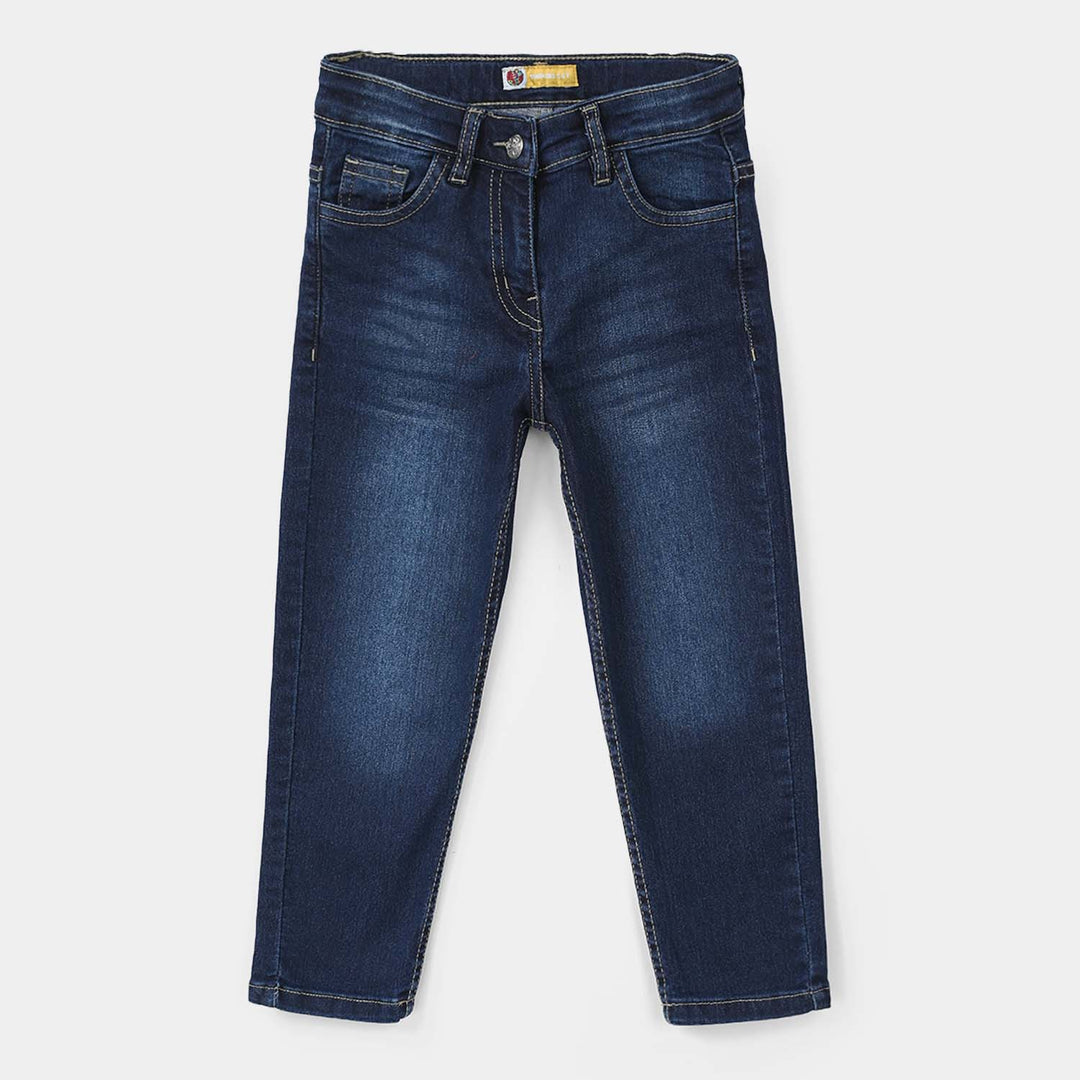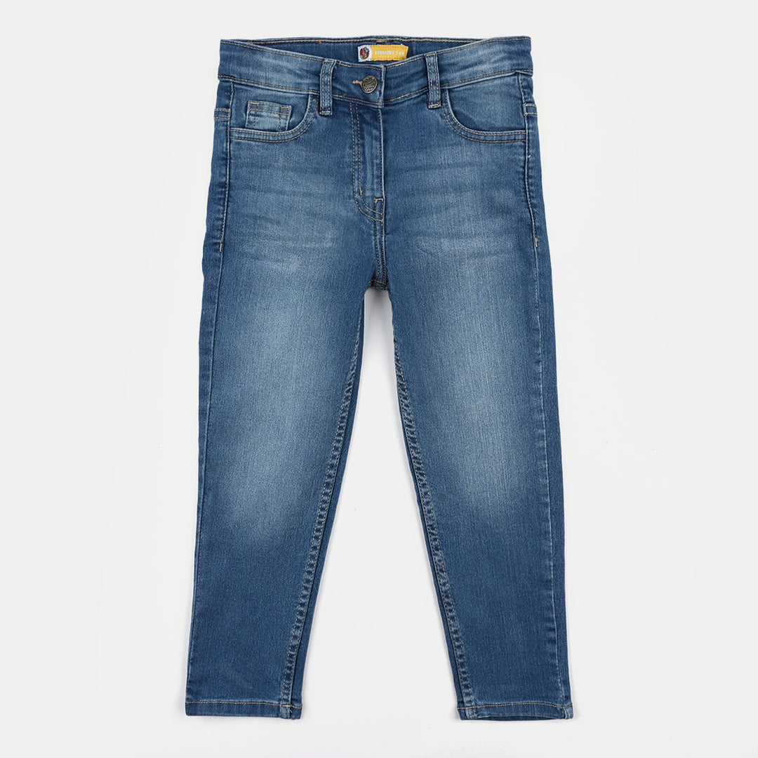 Girls Denim Stretch Pant Basic Straight Fit-Mid Blue