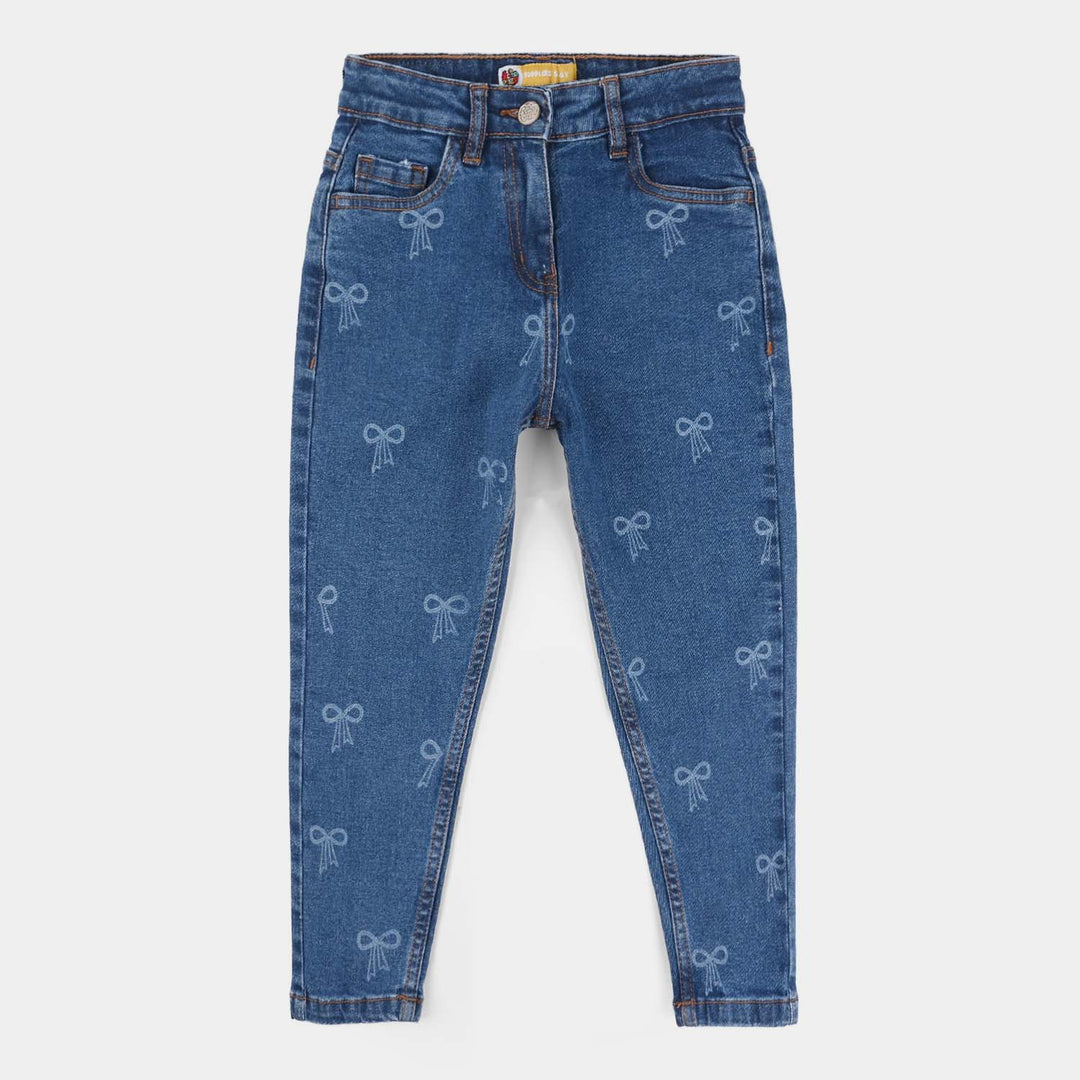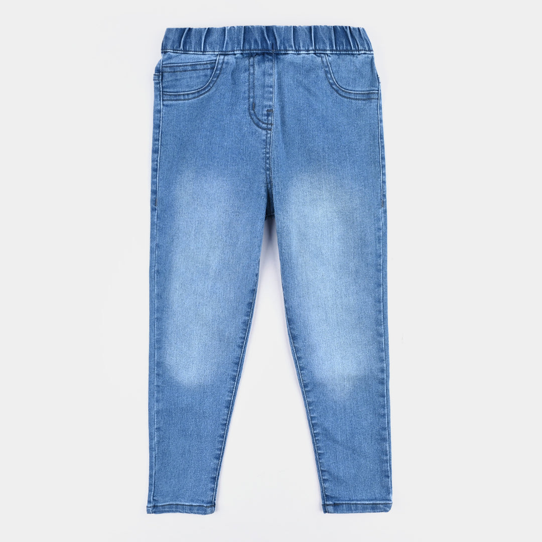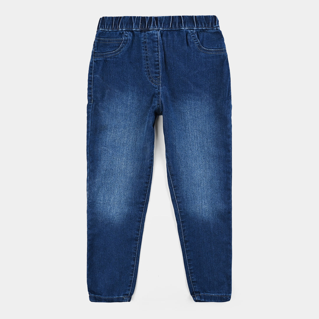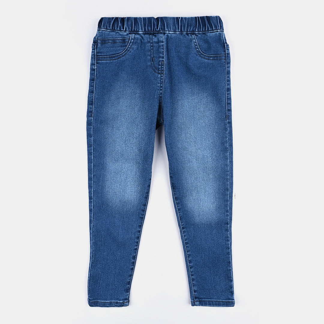Girls Denim Stretch Pant Basic Straight Fit-Mid Blue