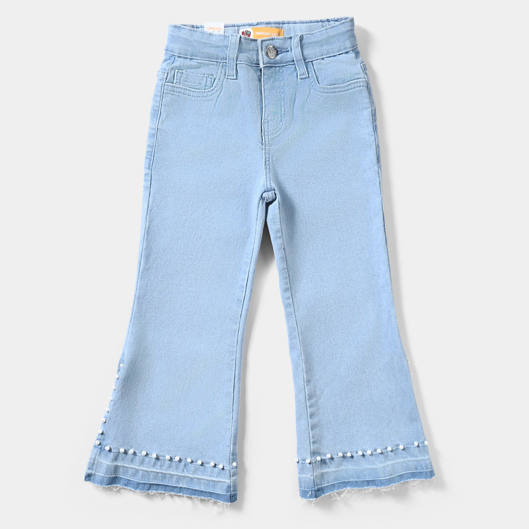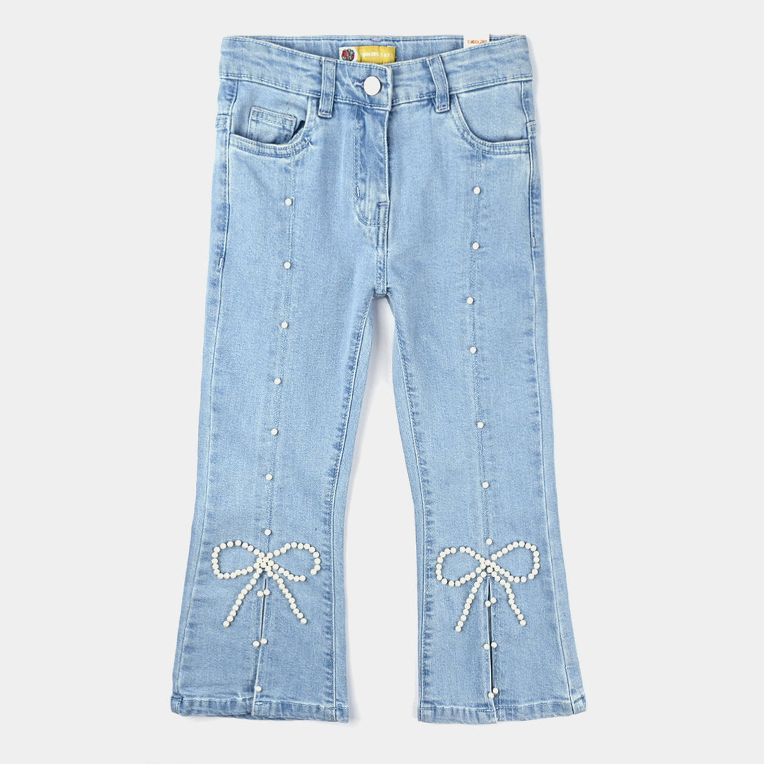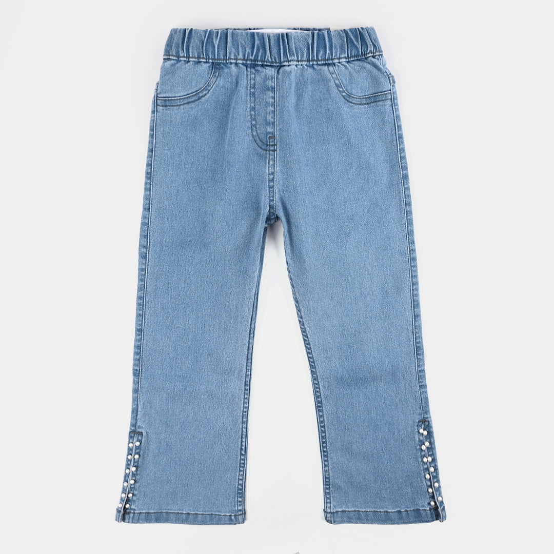 Girls Denim Stretch Pant Big Pearls-Ice Blue
