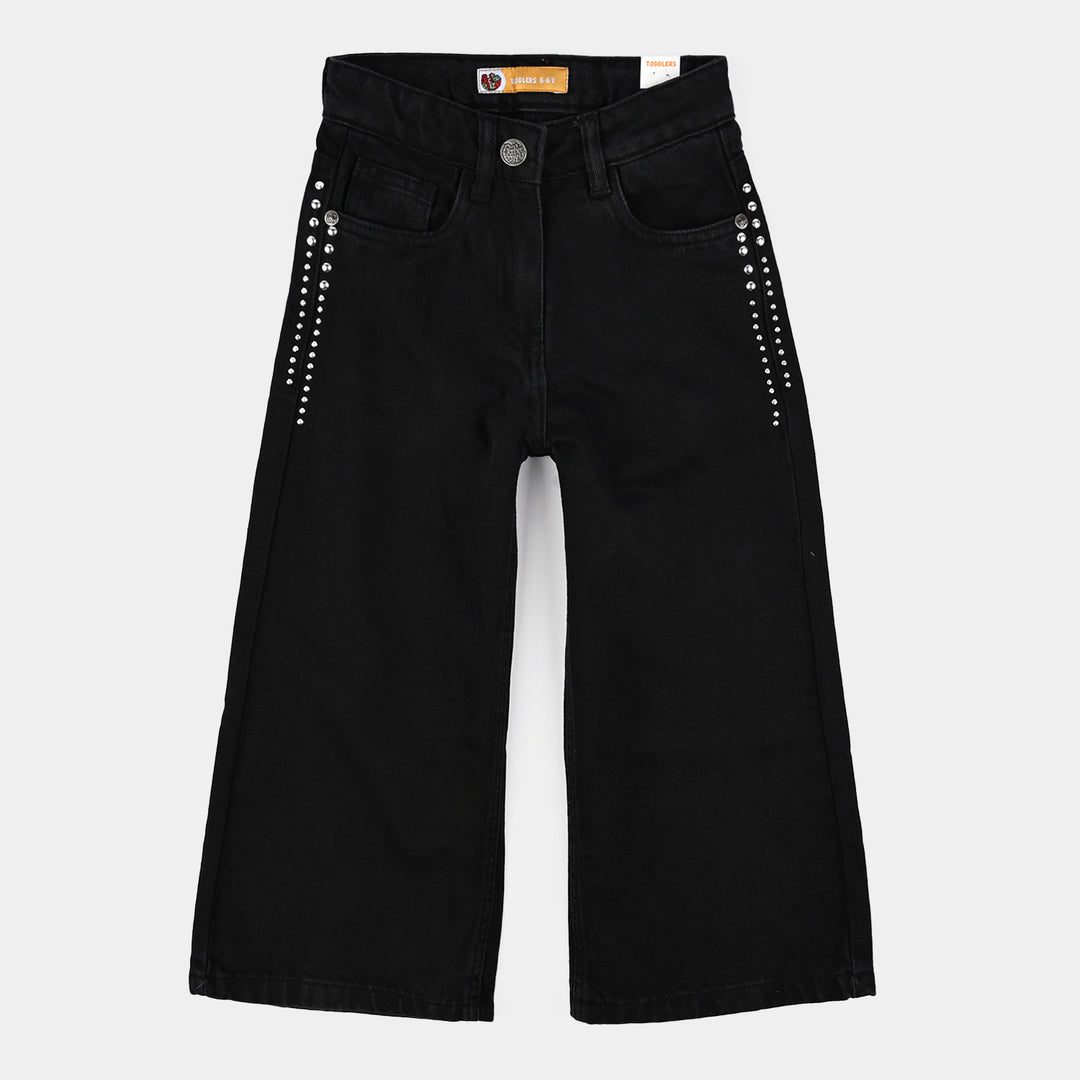 Teen Girls Denim Stretch Denim Pant-Wide Leg-BLACK