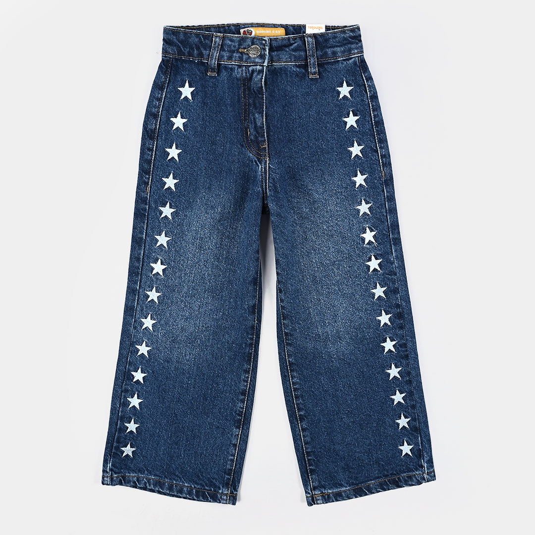 Girls Denim Stretch Pant Glitter Star-Mid Blue