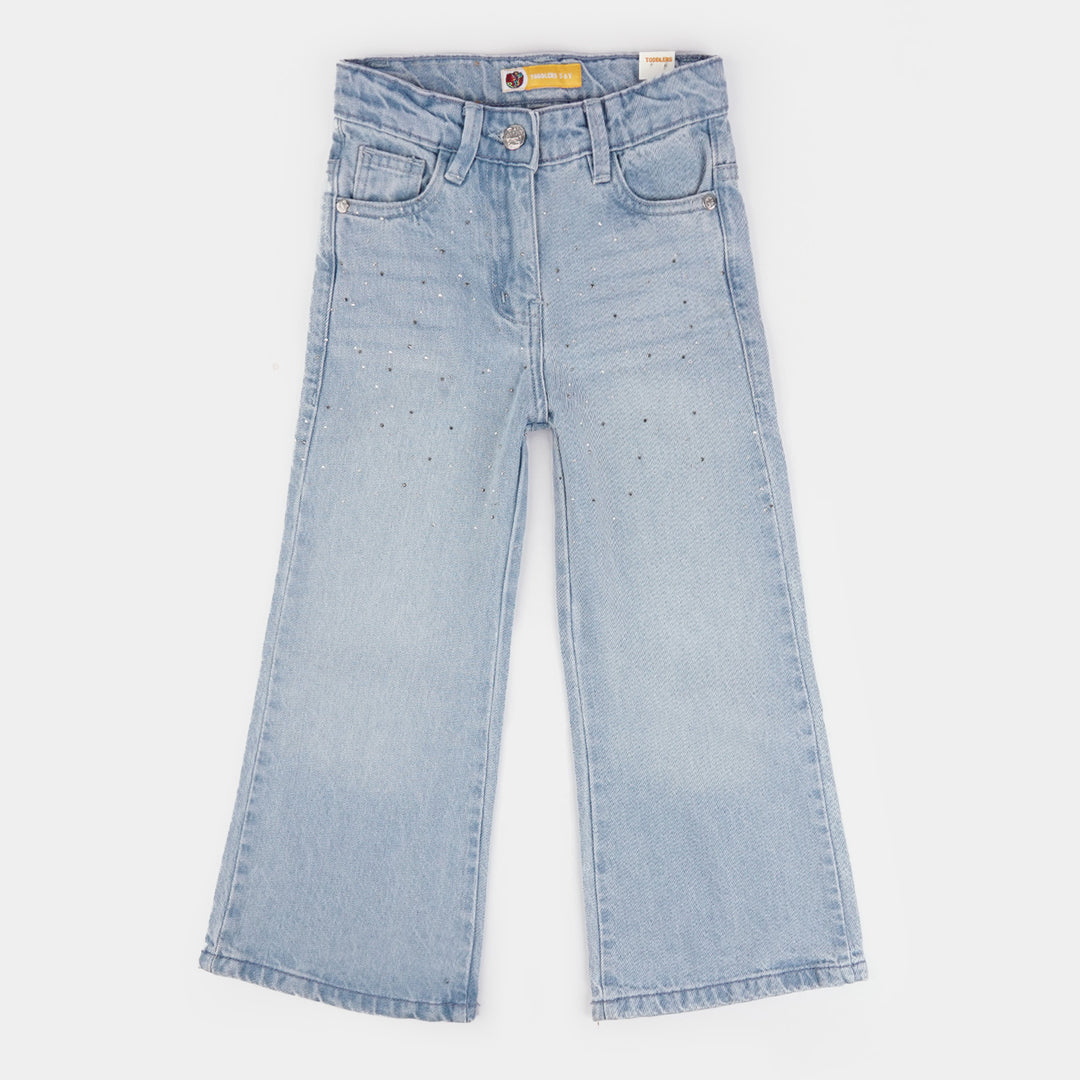 Girls Denim Stretch Pant Basic Wide Legs-Ice Blue