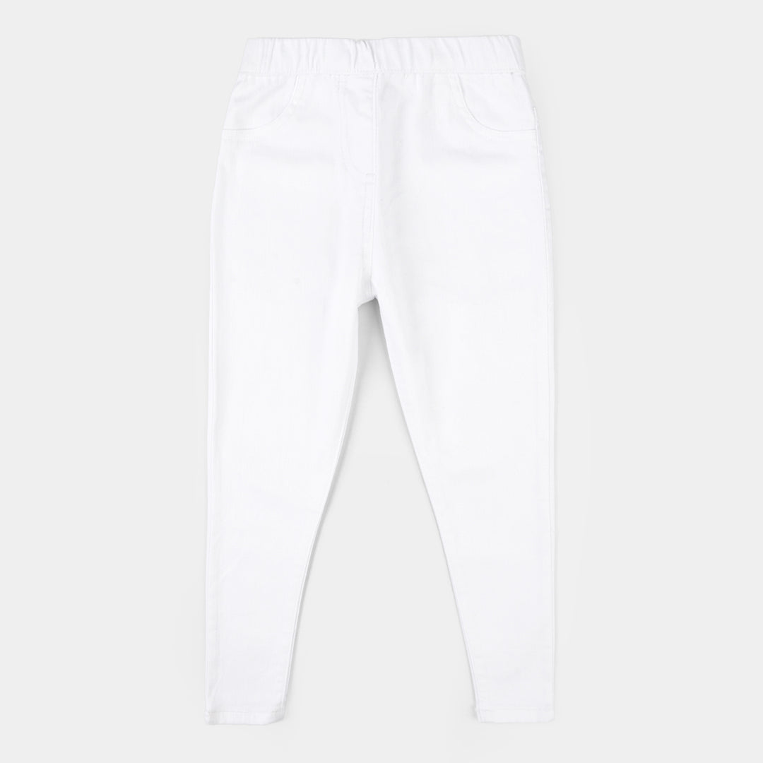 Girls Denim Stretch Pant Pearls & Studs-Ice Blue