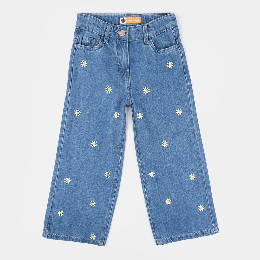 Girls Denim Stretch Pant Basic Flared Fit-Mid Blue