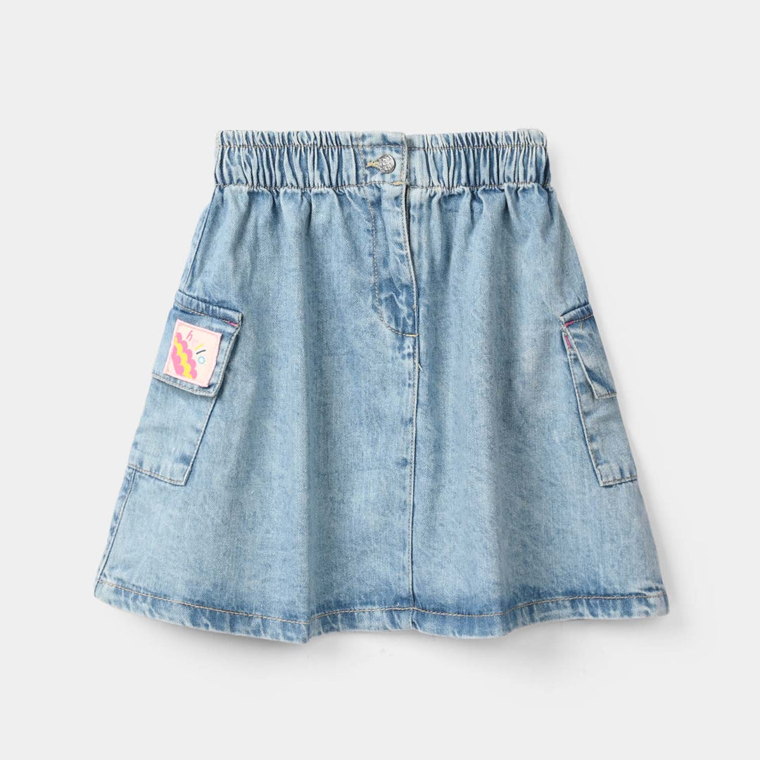 Girls Denim Stretch Pant Cargo Style - Light Blue