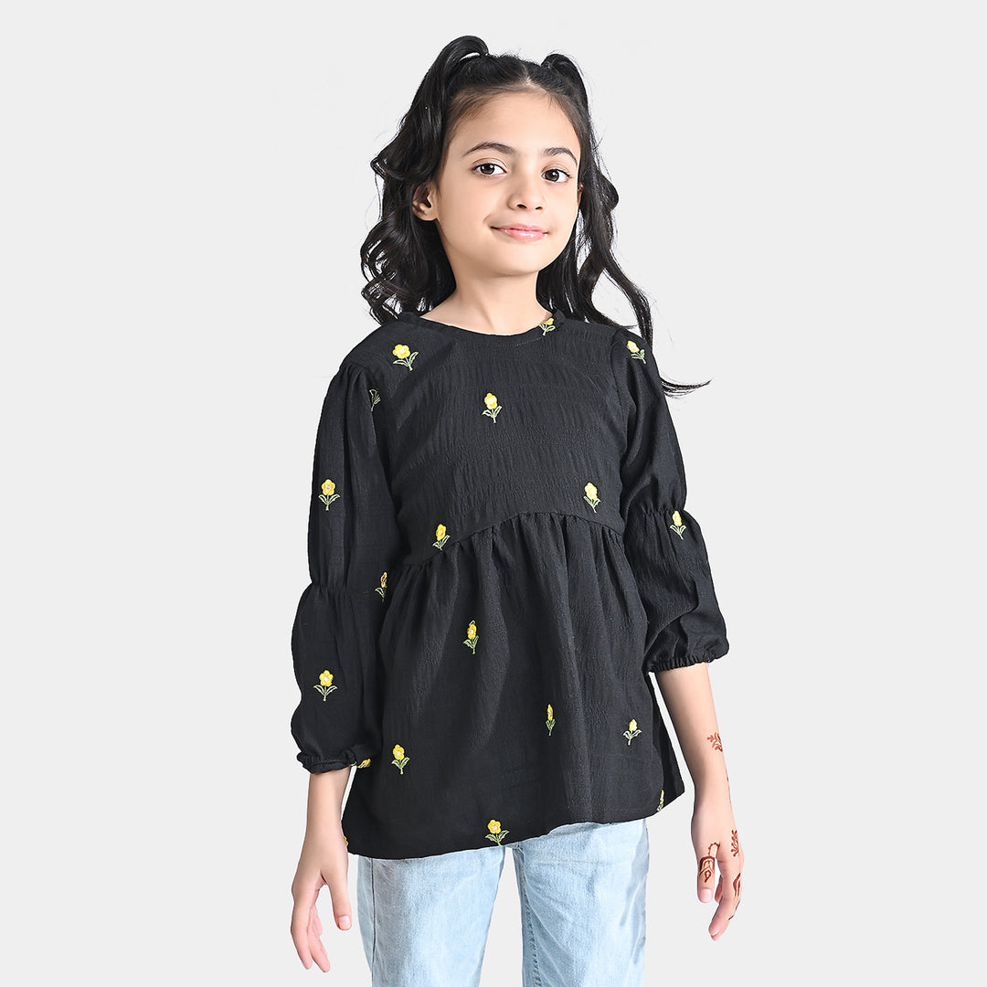 Girls Poly Cotton Emb Top Yellow Affair-BLACK