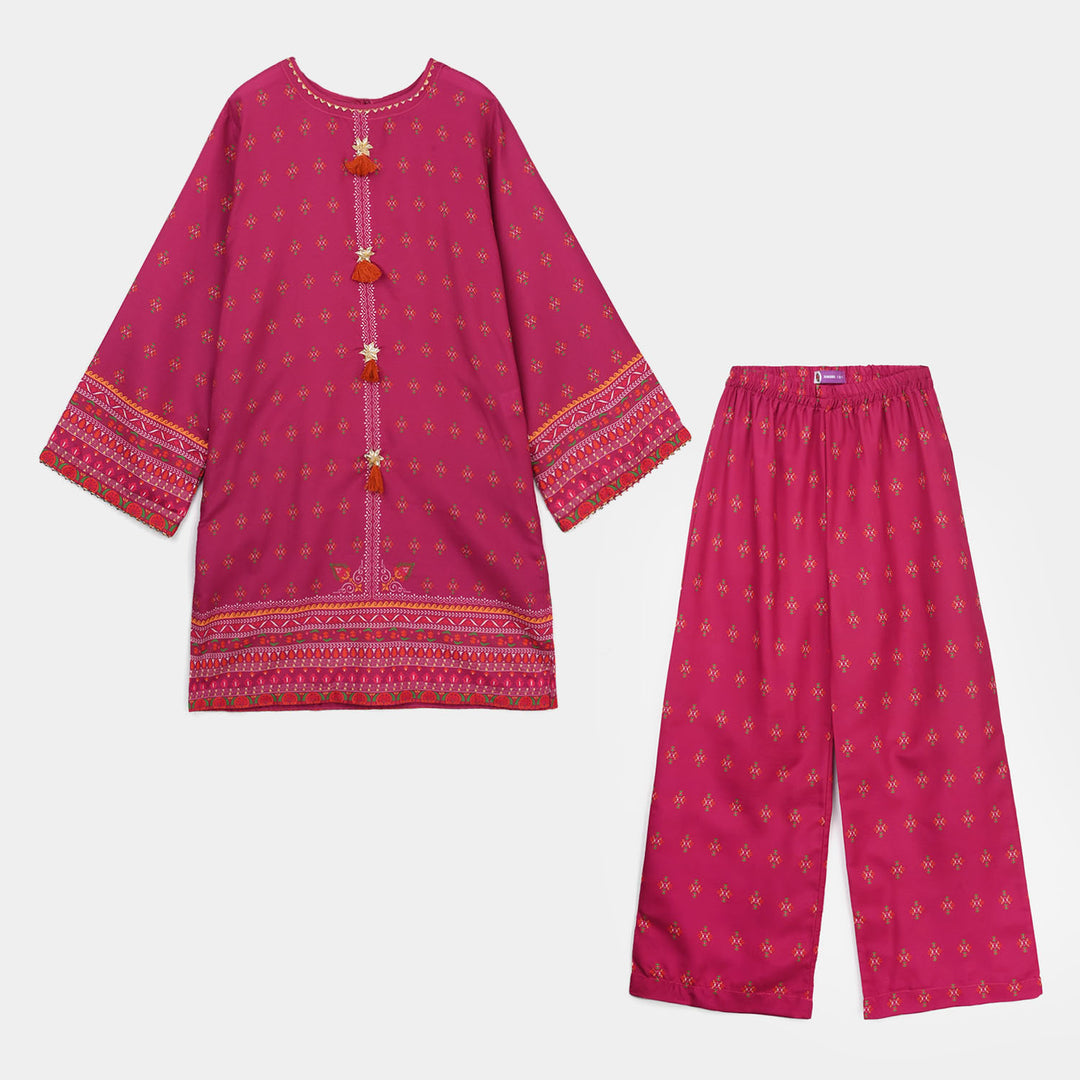 Girls Cotton Poplin Printed 2 Pcs Rangela - Pink